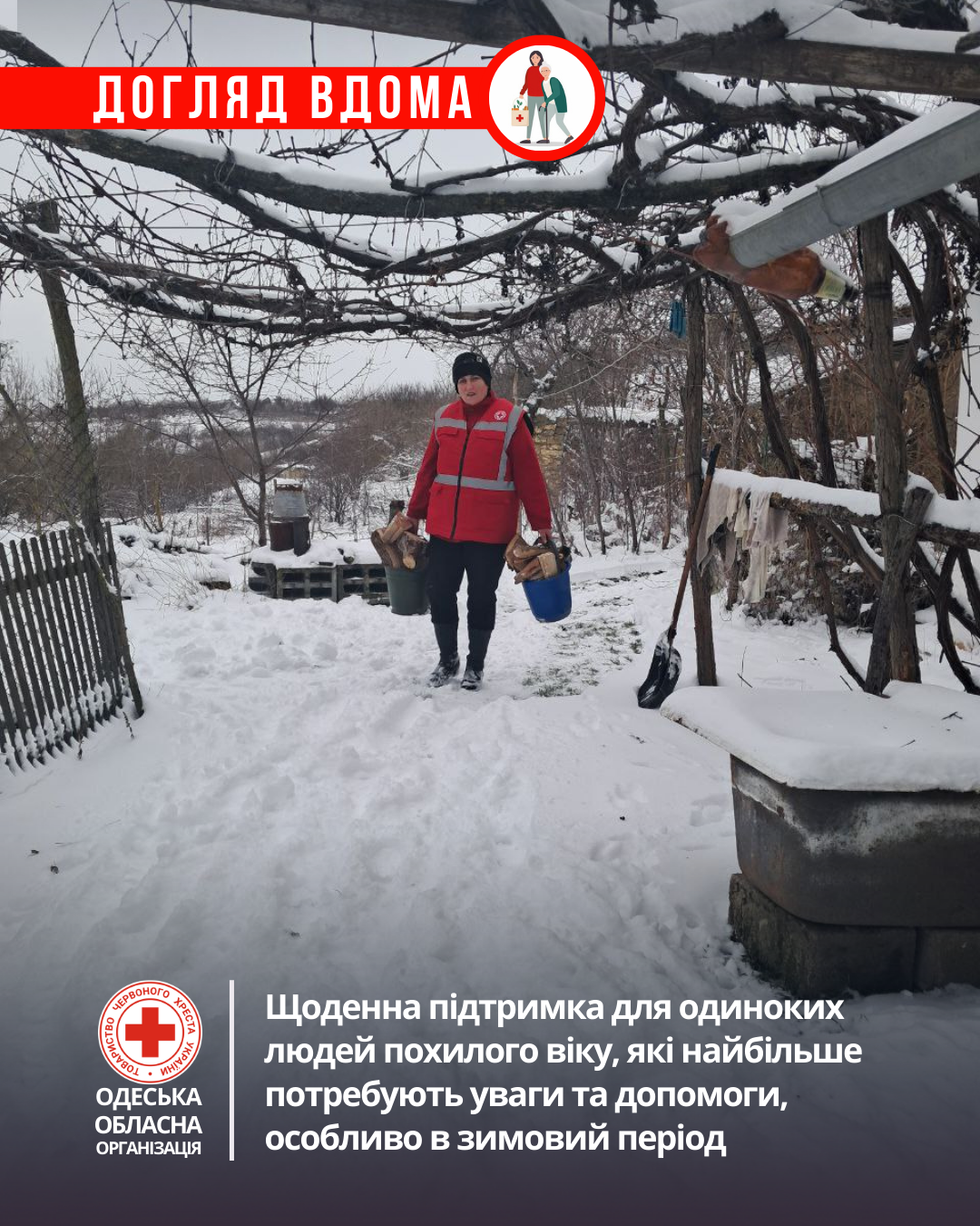 Напрямок «Догляд вдома» Українського Червоного Хреста — це щоденна підтримка для одиноких людей похилого віку, які найбільше потребують уваги та допомоги, особливо в зимовий період.