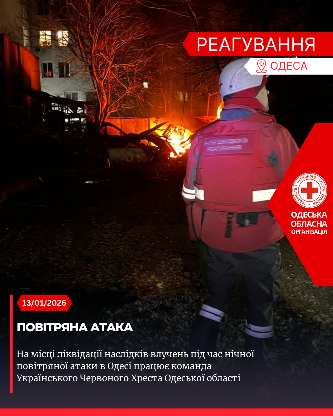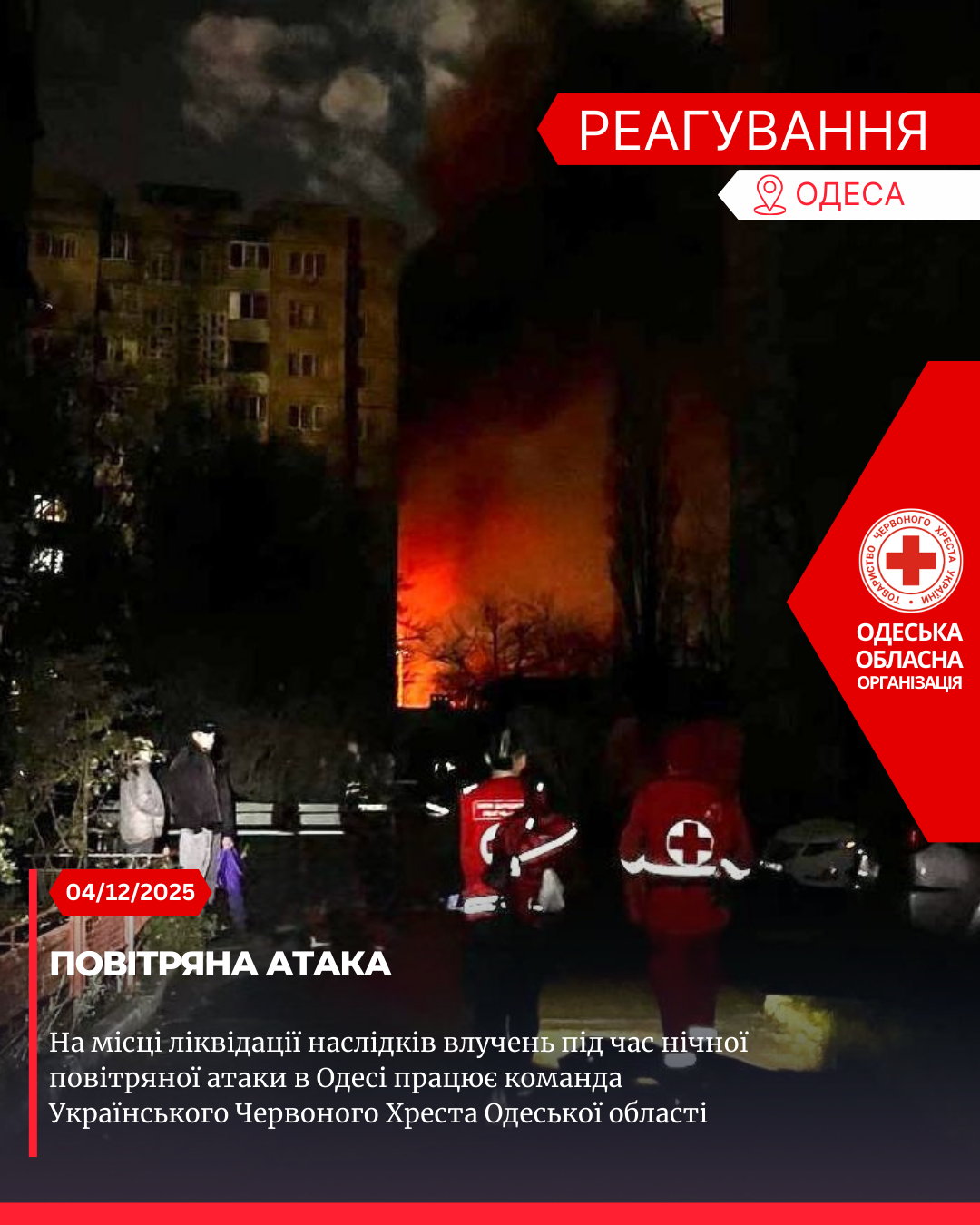 Волонтери Українського Червоного Хреста надали допомогу на місці нічної атаки
