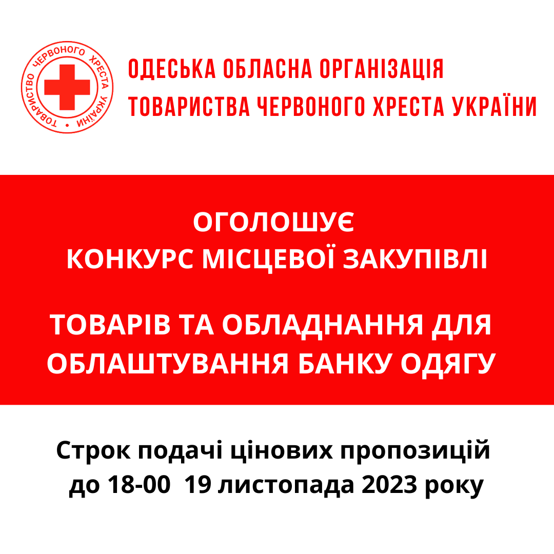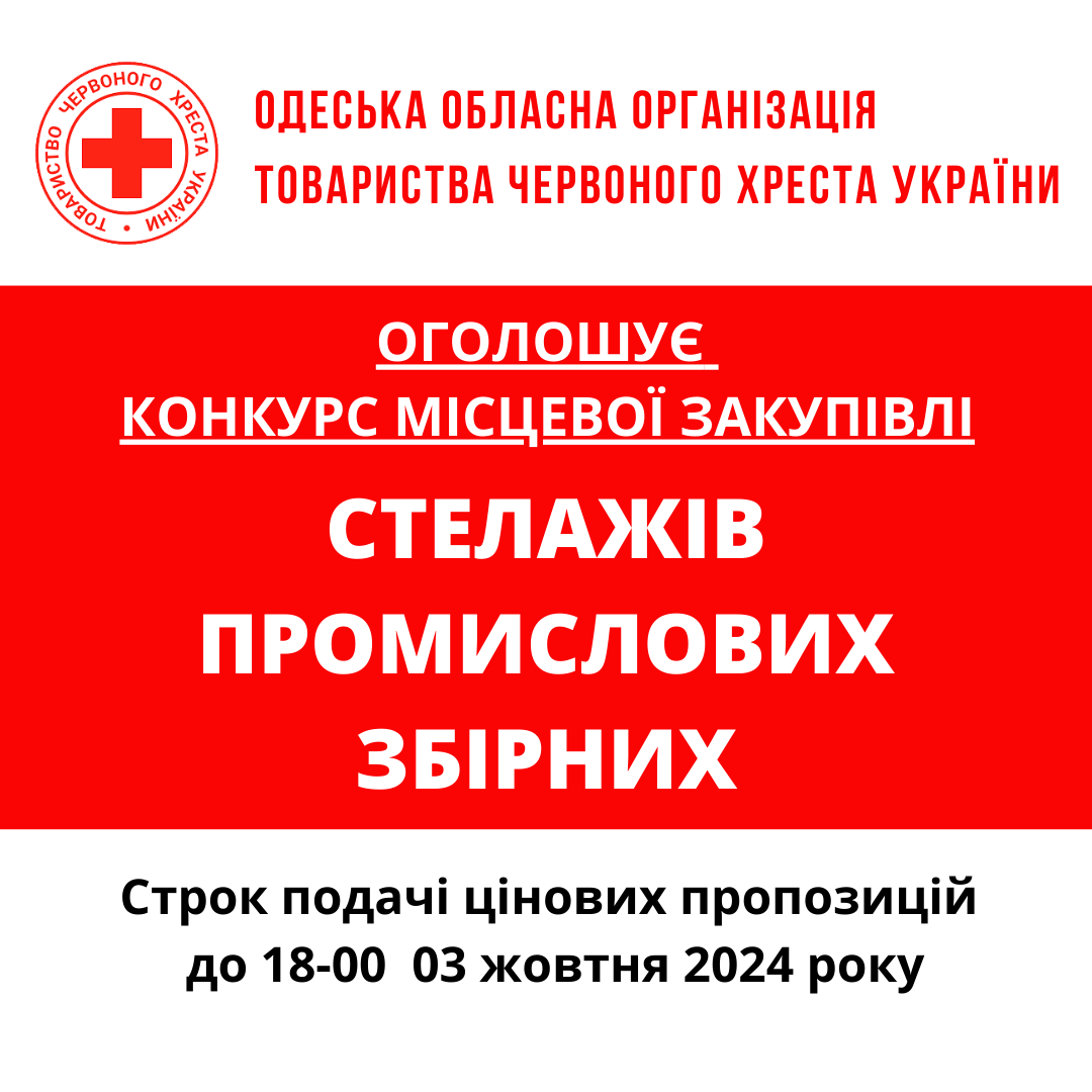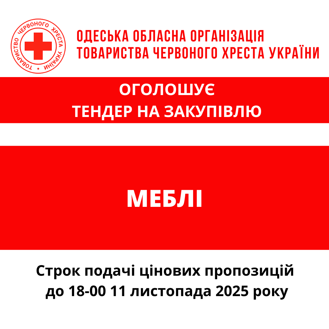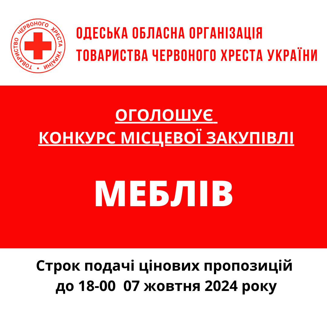 Одеська обласна організація Товариства Червоного Хреста України оголошує конкурс місцевих закупівель на придбання меблів