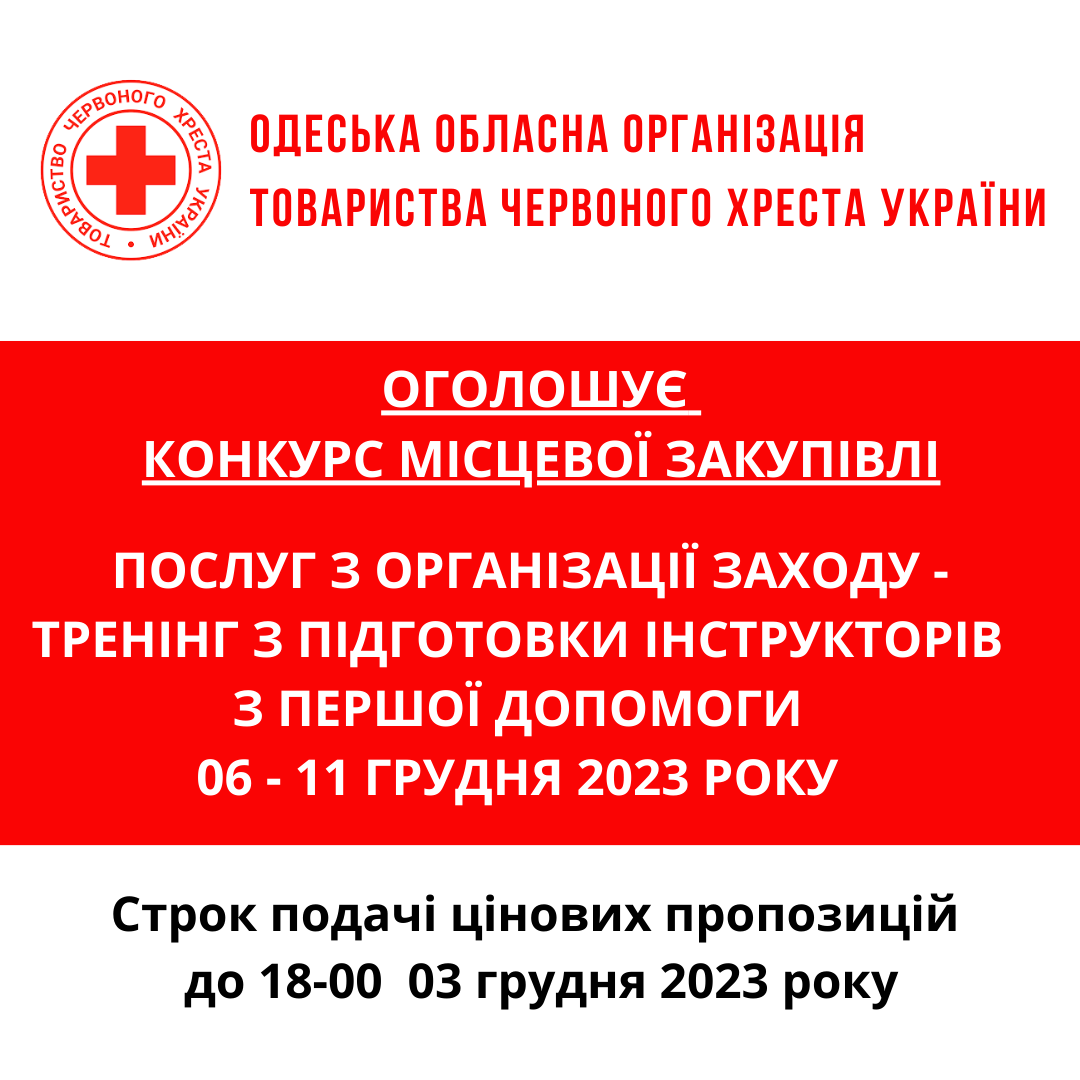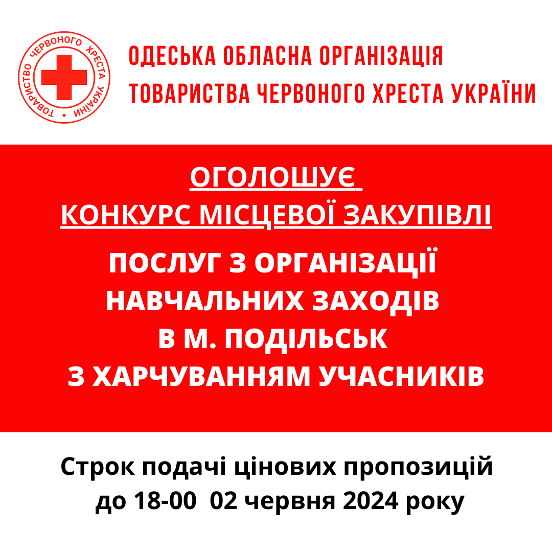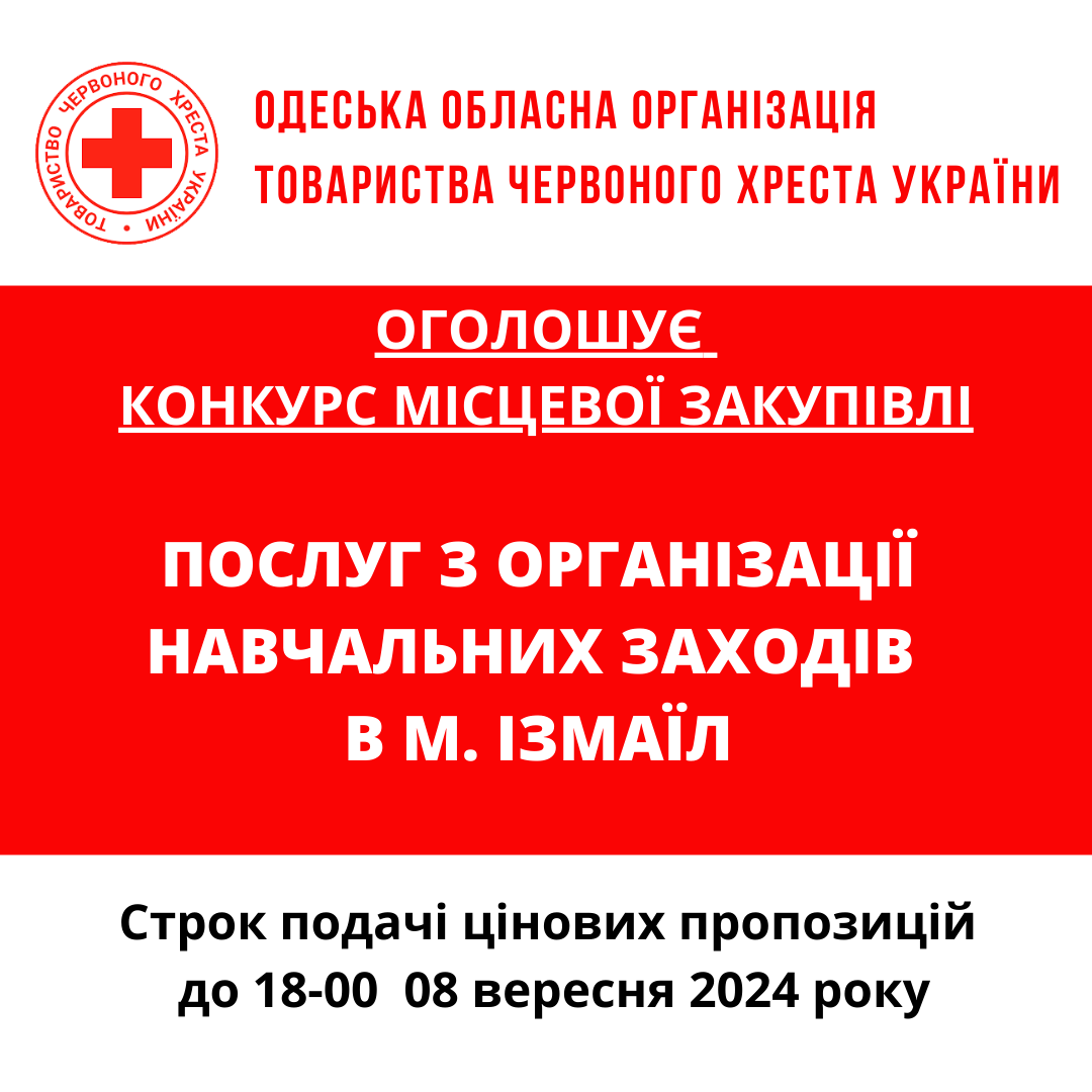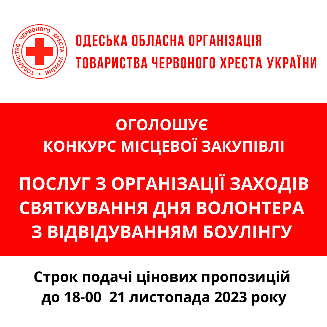 ГО «Одеська обласна організація Товариства Червоного Хреста України» оголошує тендер на закупівлю послуг з організації заходів.