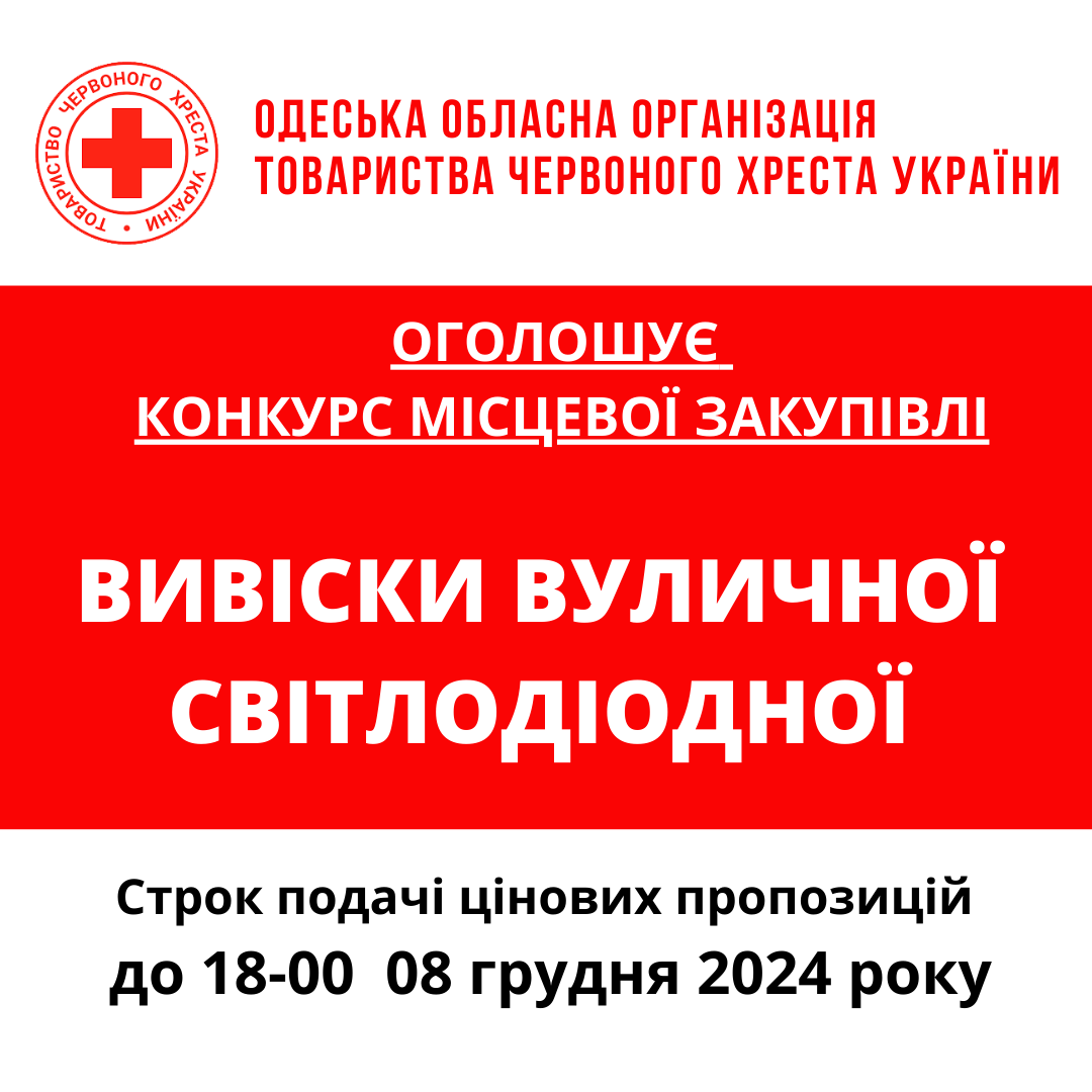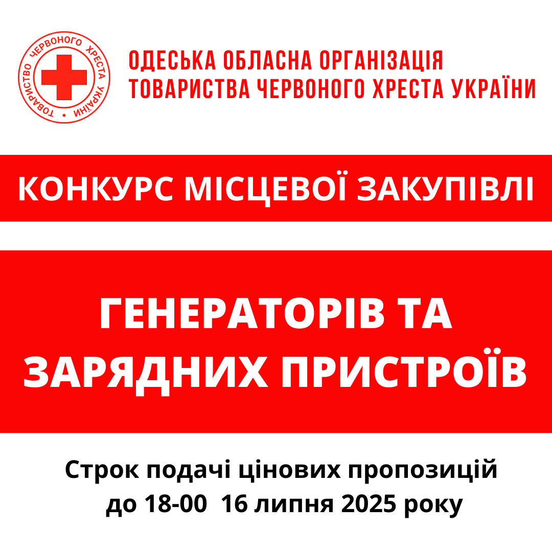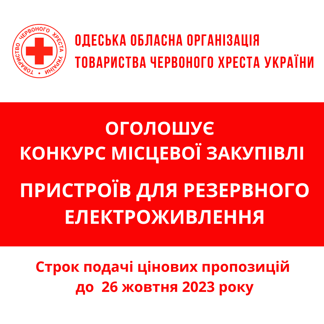 Одеська обласна організація Товариства Червоного Хреста України оголошує конкурс на місцеву закупівлю електричного обладнання