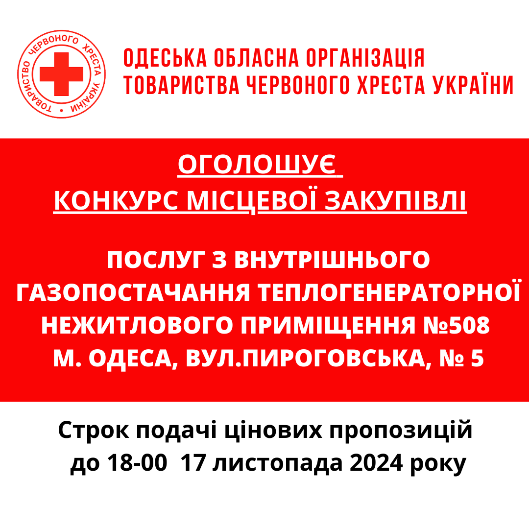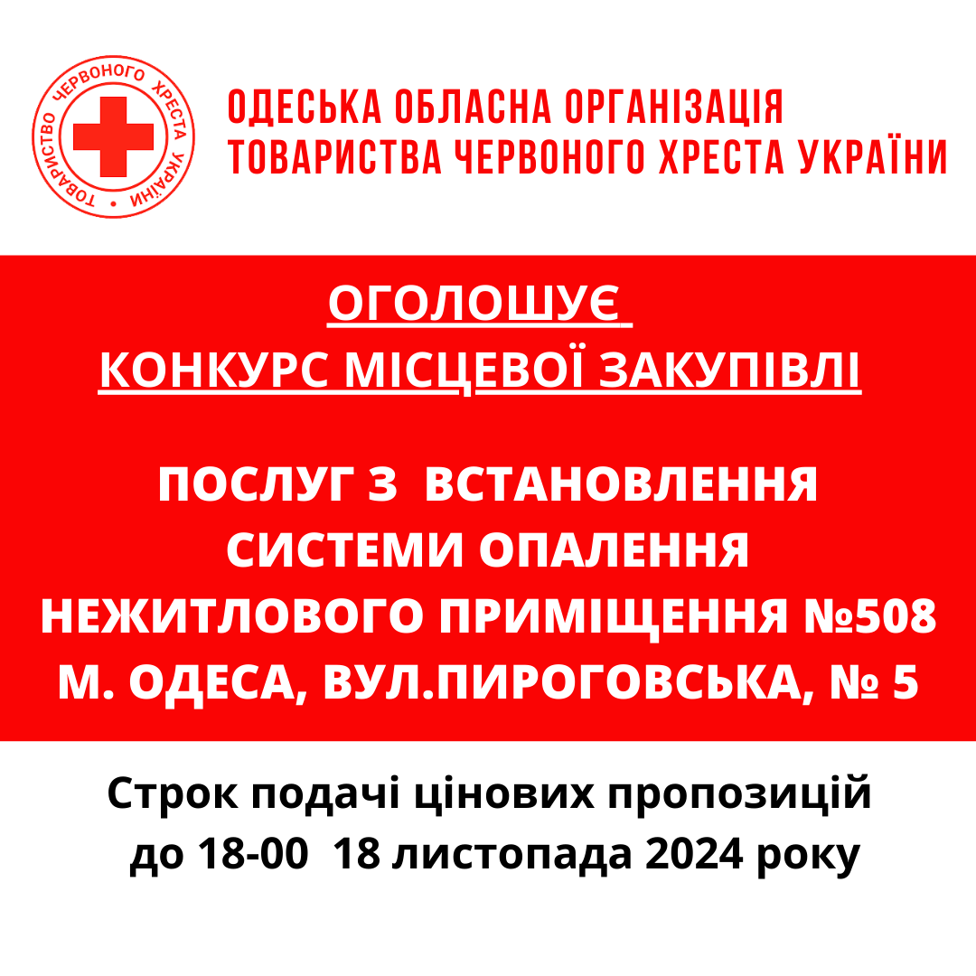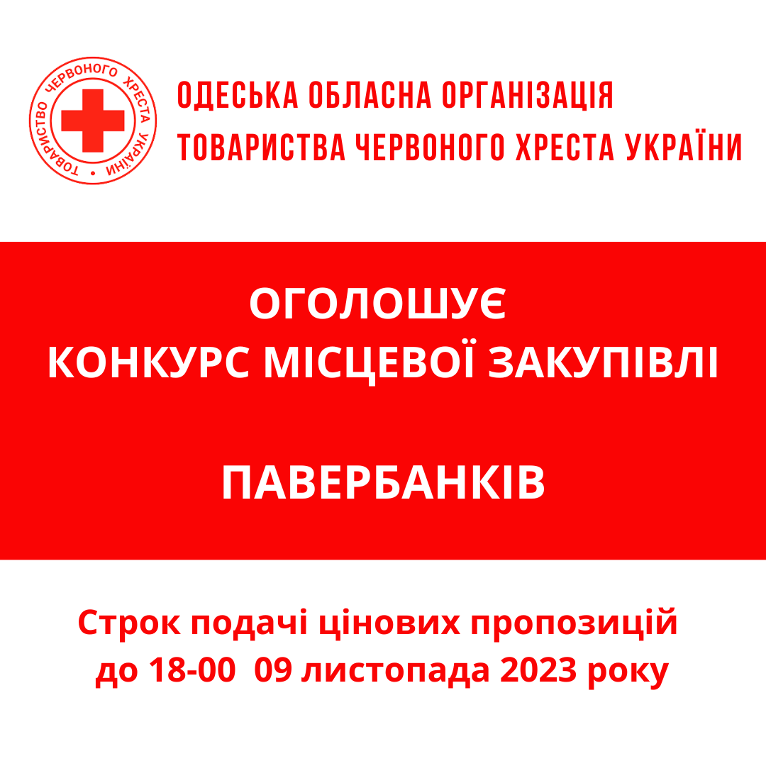 Одеська обласна організація Товариства Червоного Хреста України оголошує конкурс на місцеву закупівлю електричного обладнання