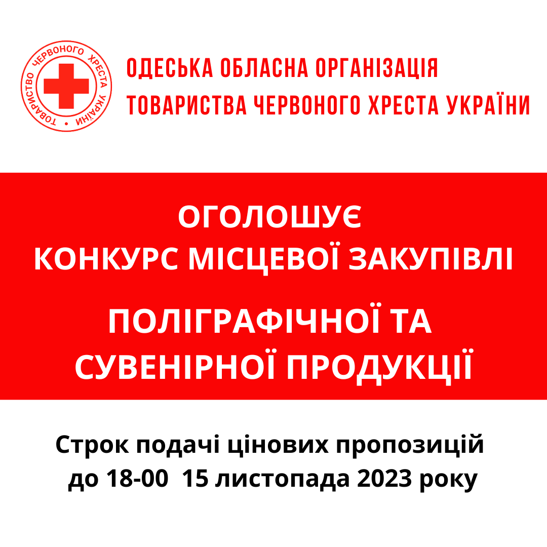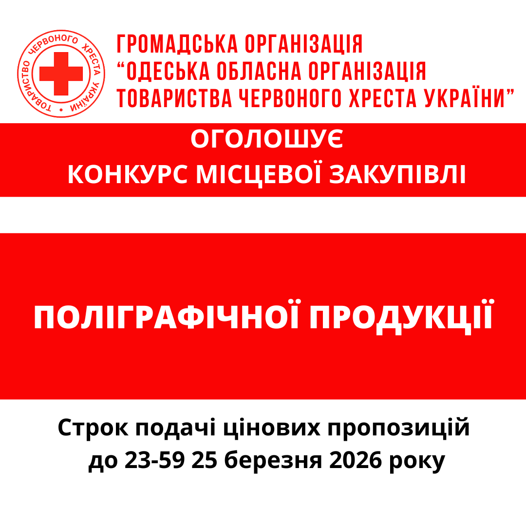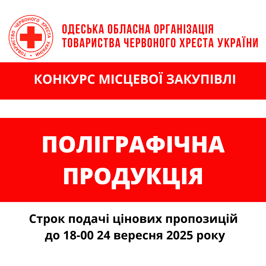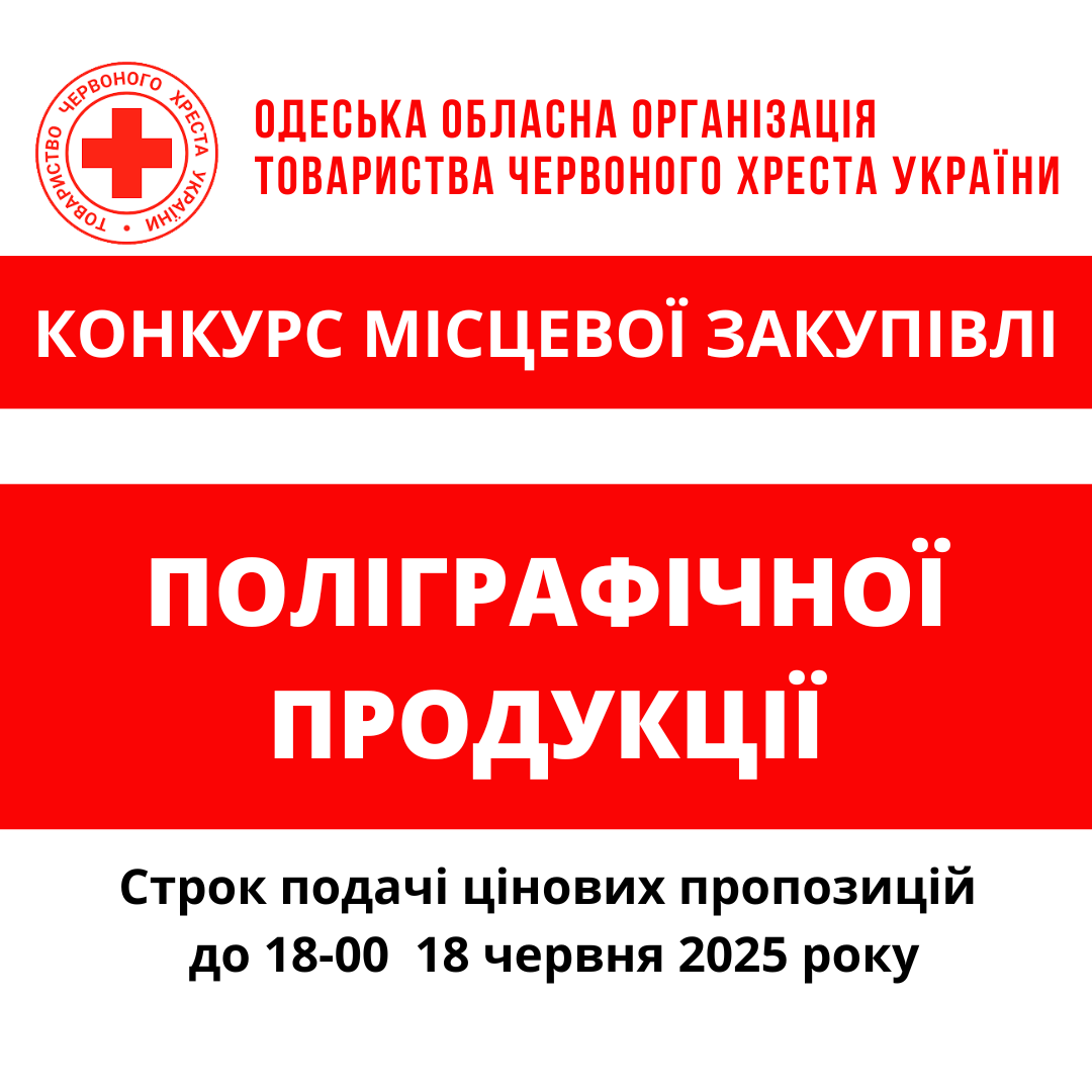 ГО «Одеська обласна організація Товариства Червоного Хреста України» оголошує конкурс місцевої закупівлі поліграфічної продукції.