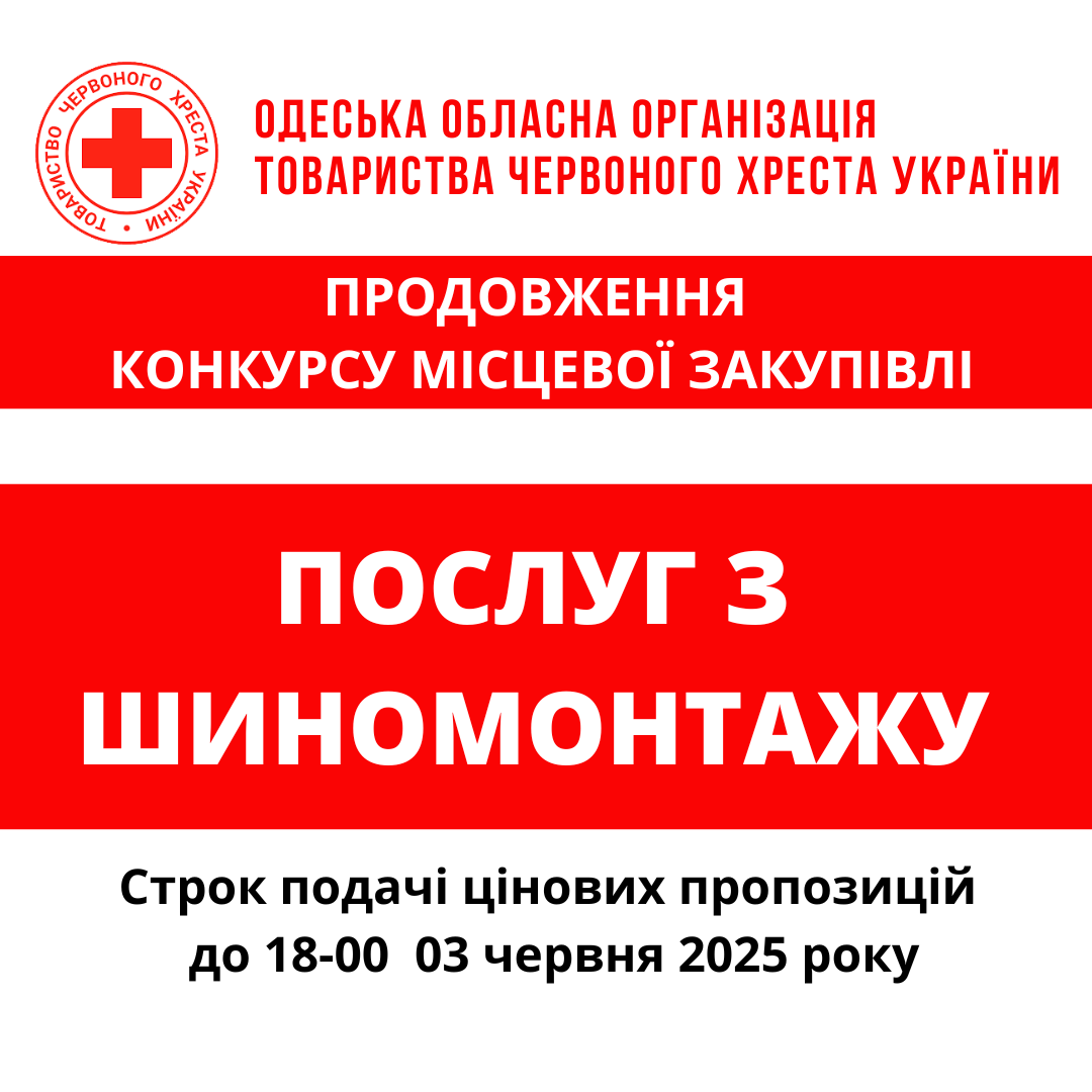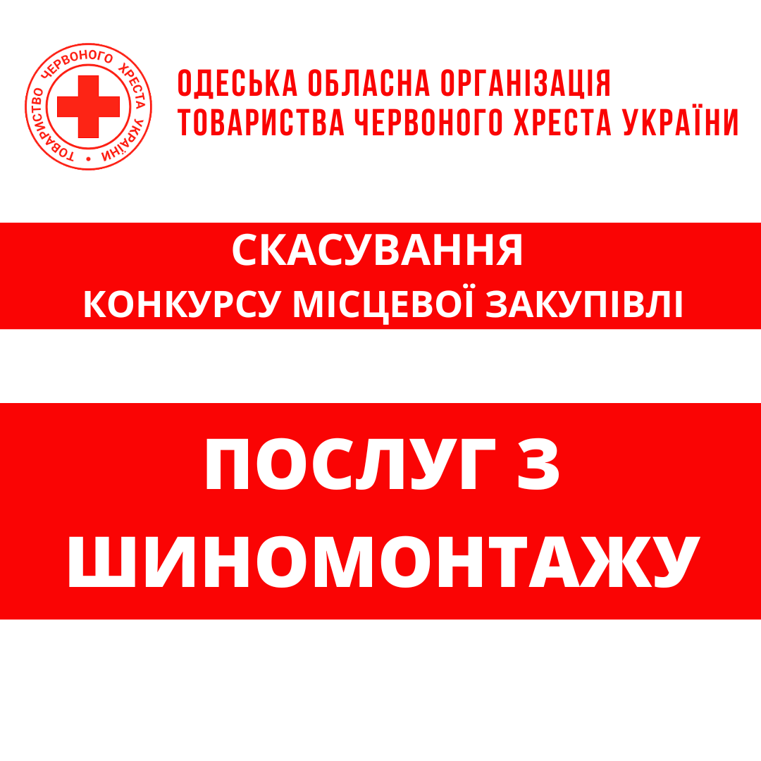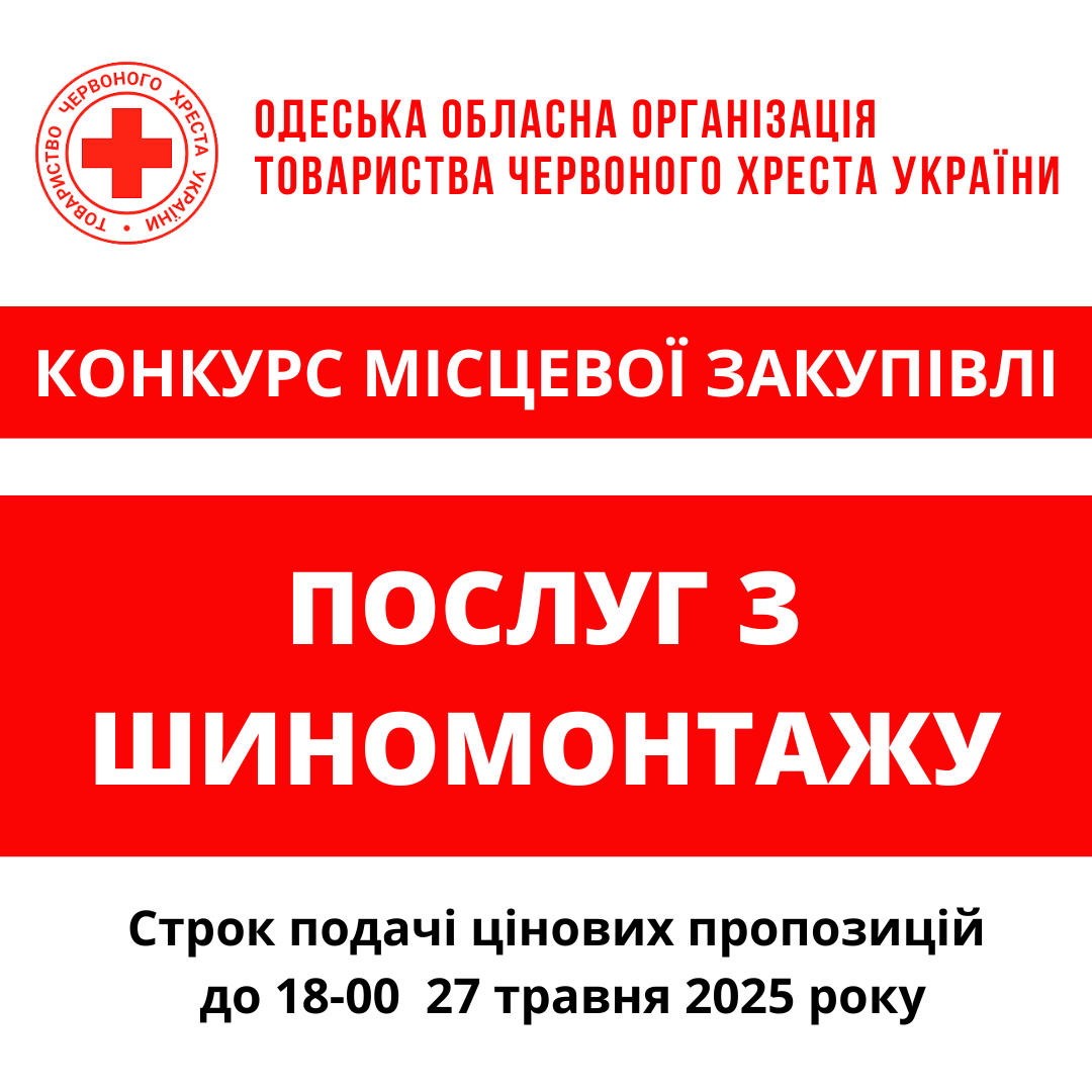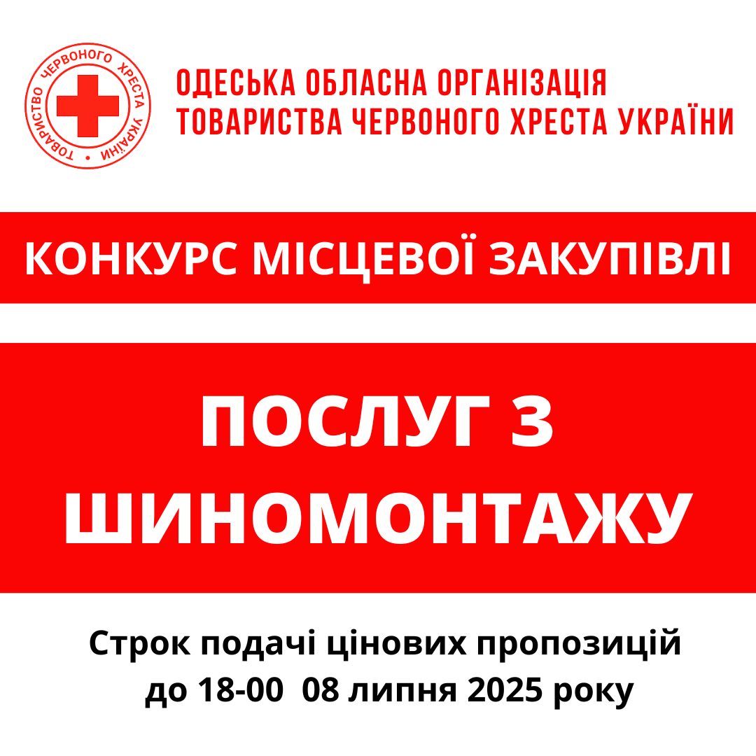 ГО «Одеська обласна організація Товариства Червоного Хреста України» оголошує конкурс місцевої закупівлі послуг з шиномонтажу.