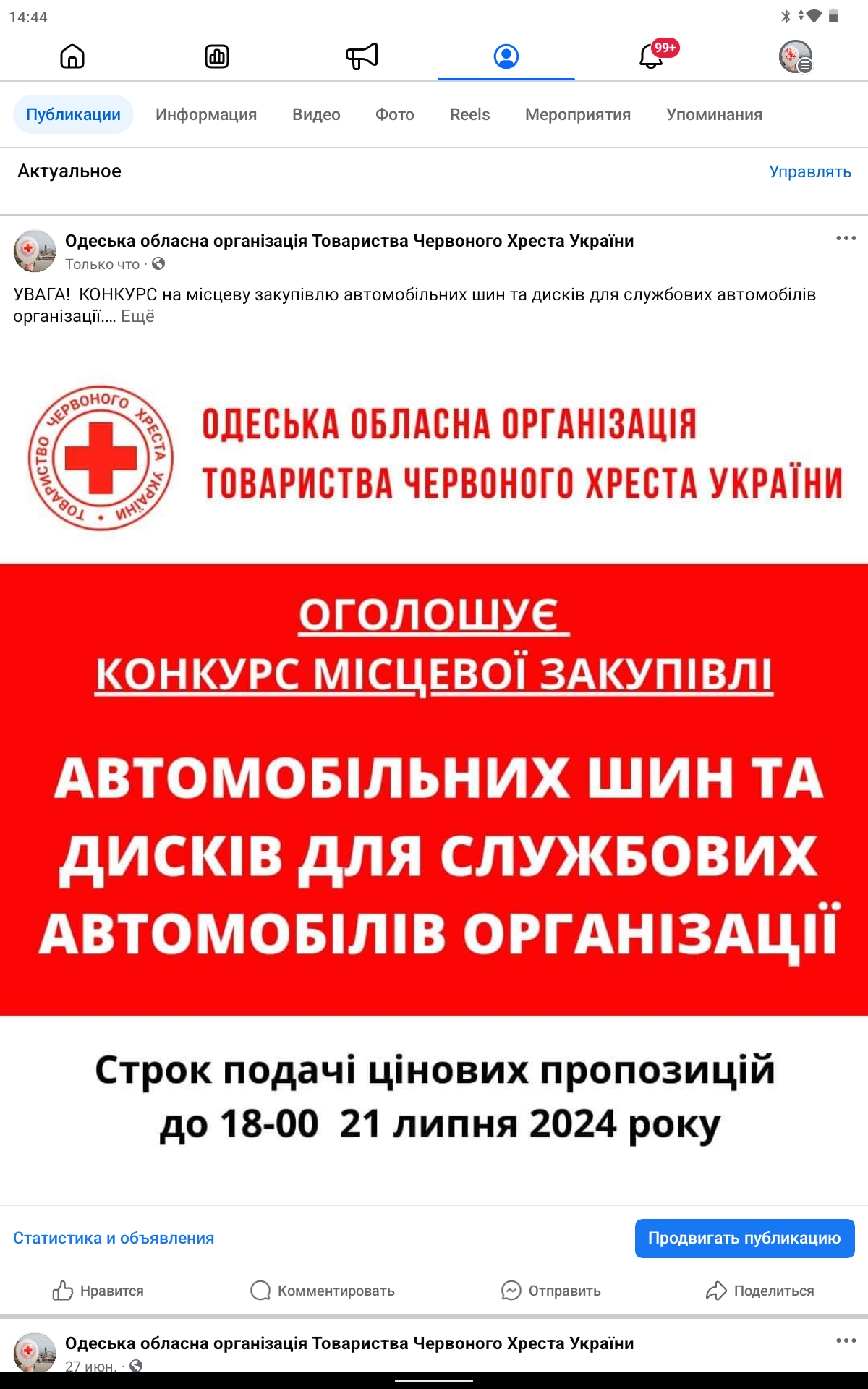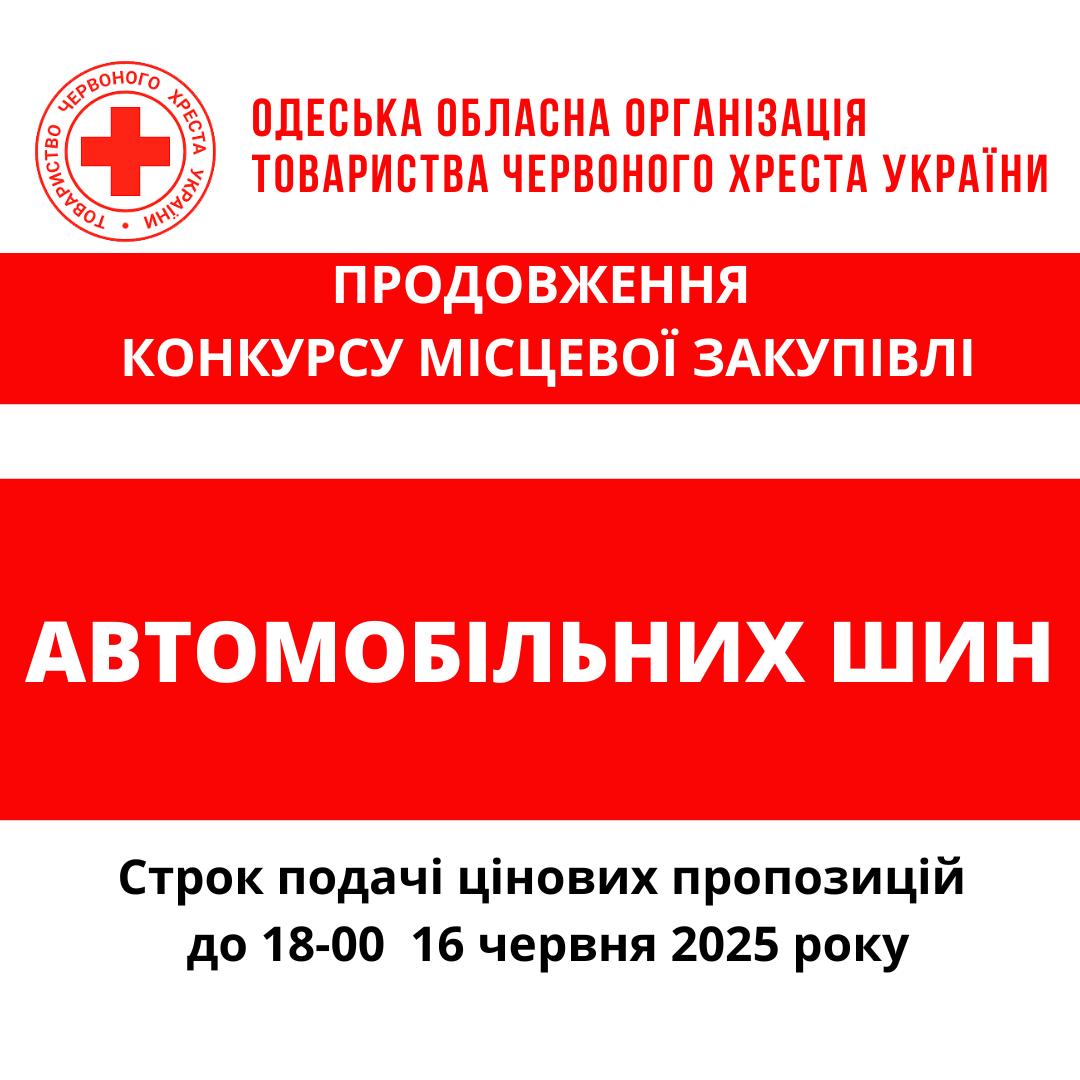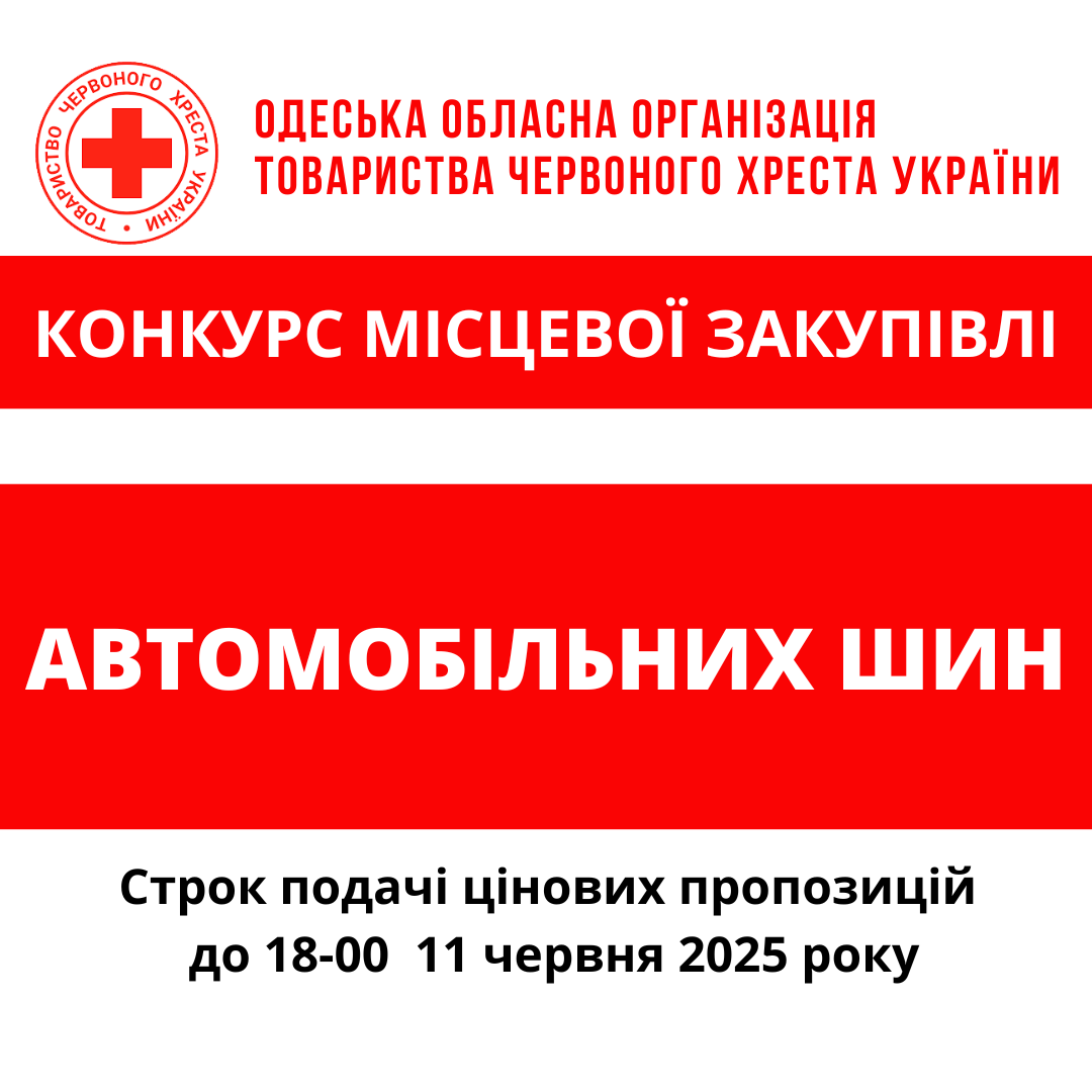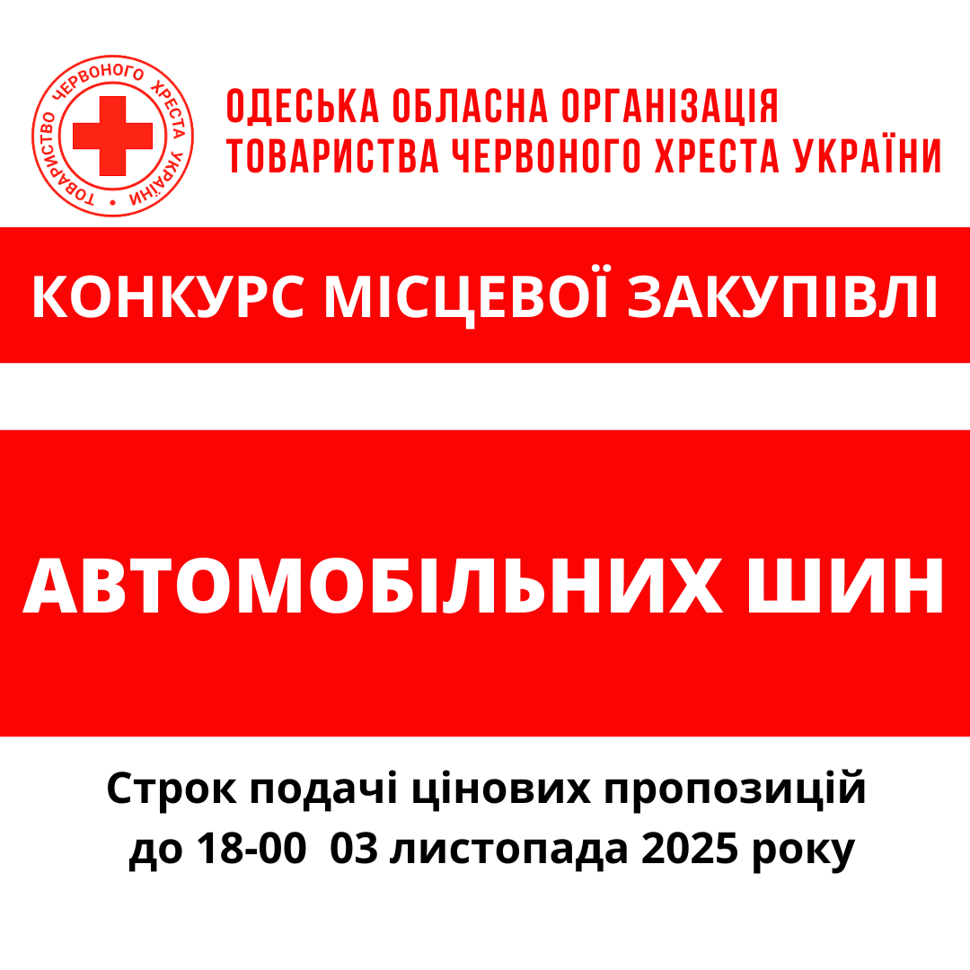 ГО «Одеська обласна організація Товариства Червоного Хреста України» оголошує конкурс місцевої закупівлі послуг з шиномонтажу.