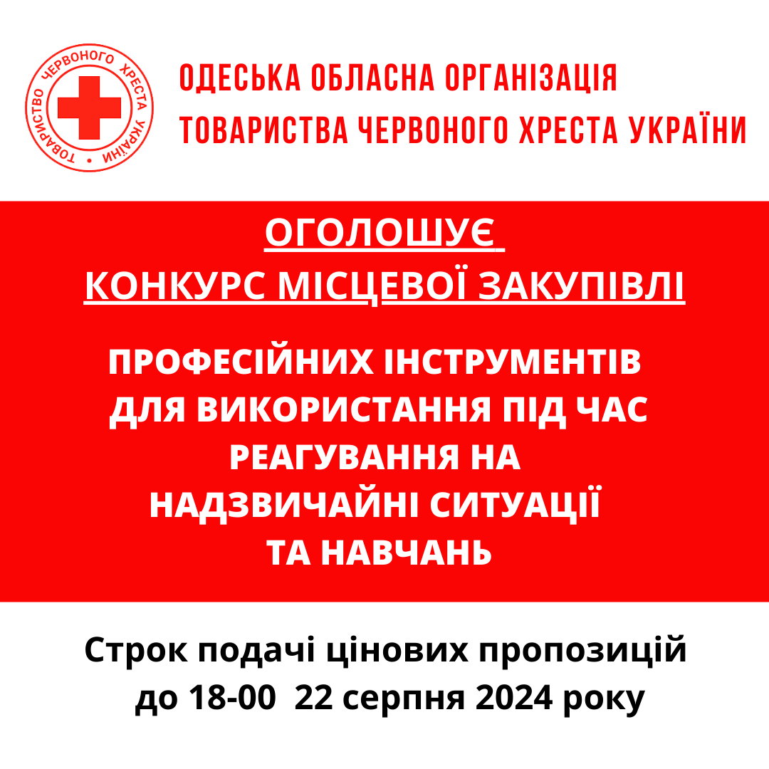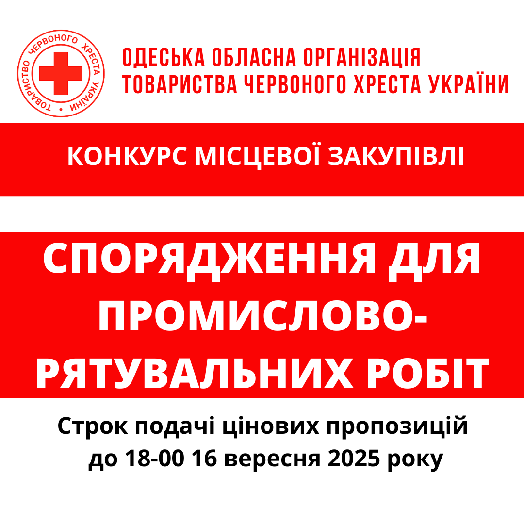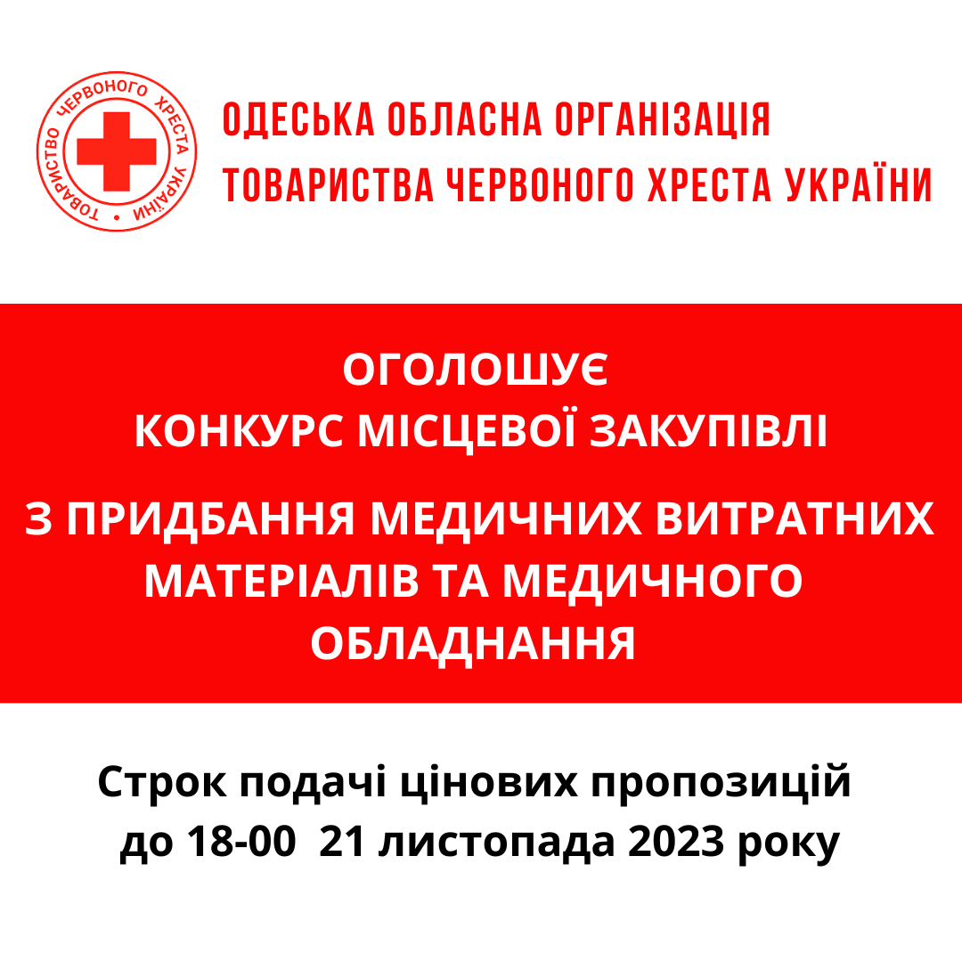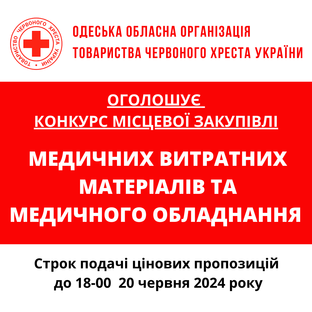 Одеська обласна організація Товариства Червоного Хреста України оголошує конкурс на місцеву закупівлю на придбання засобів підтримки та реабілітації для бенефіціарів.