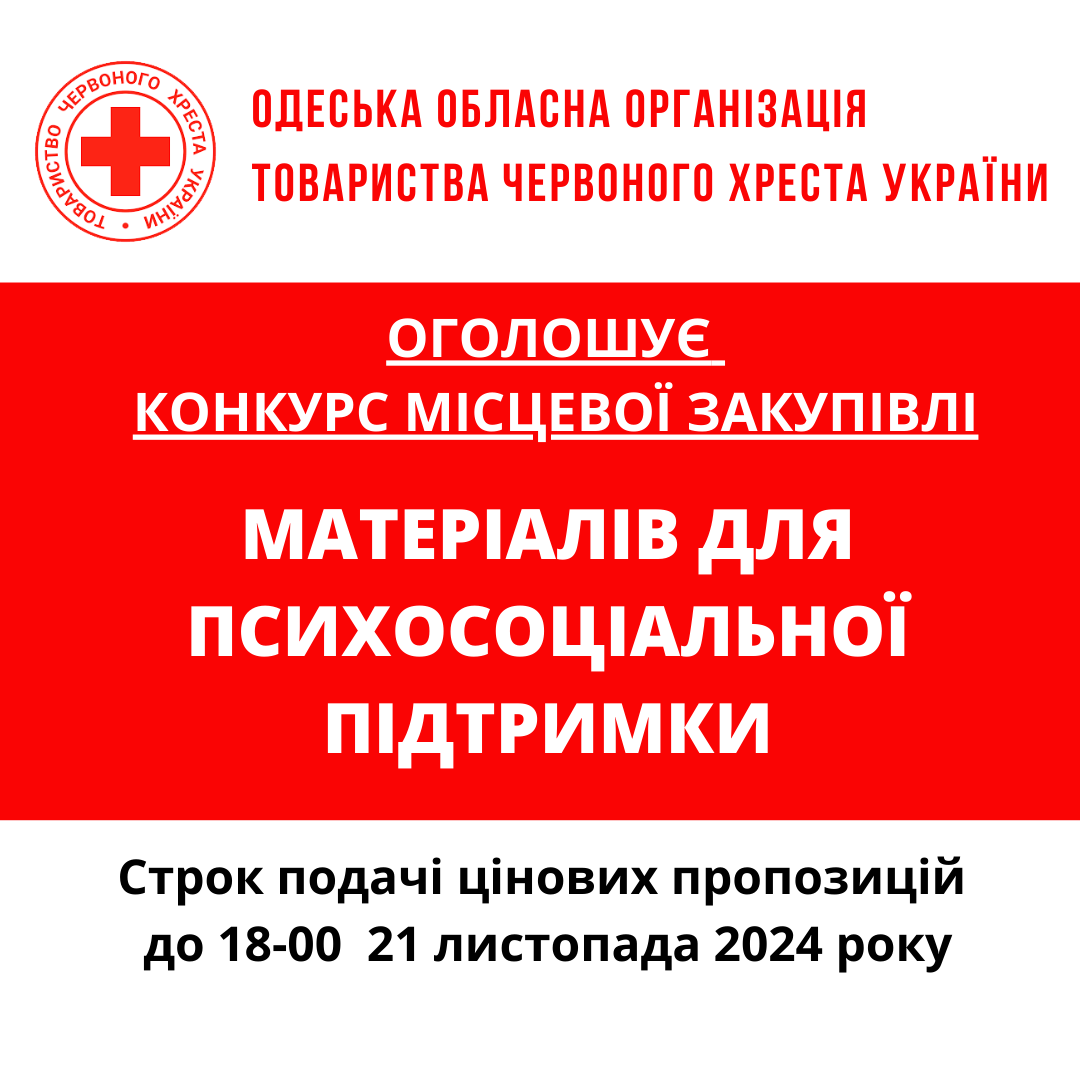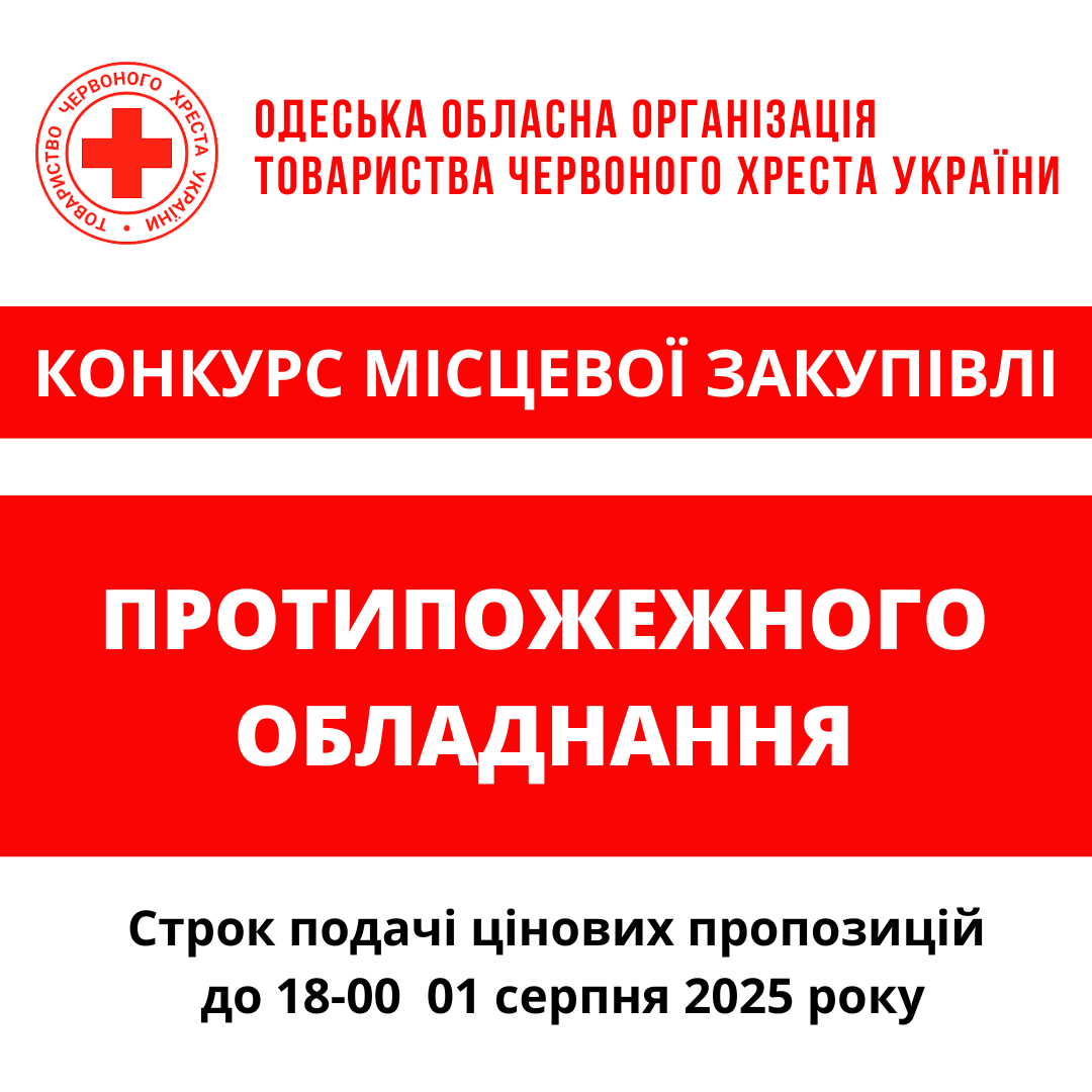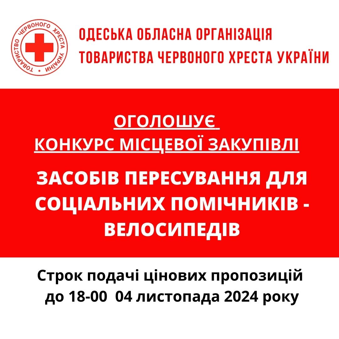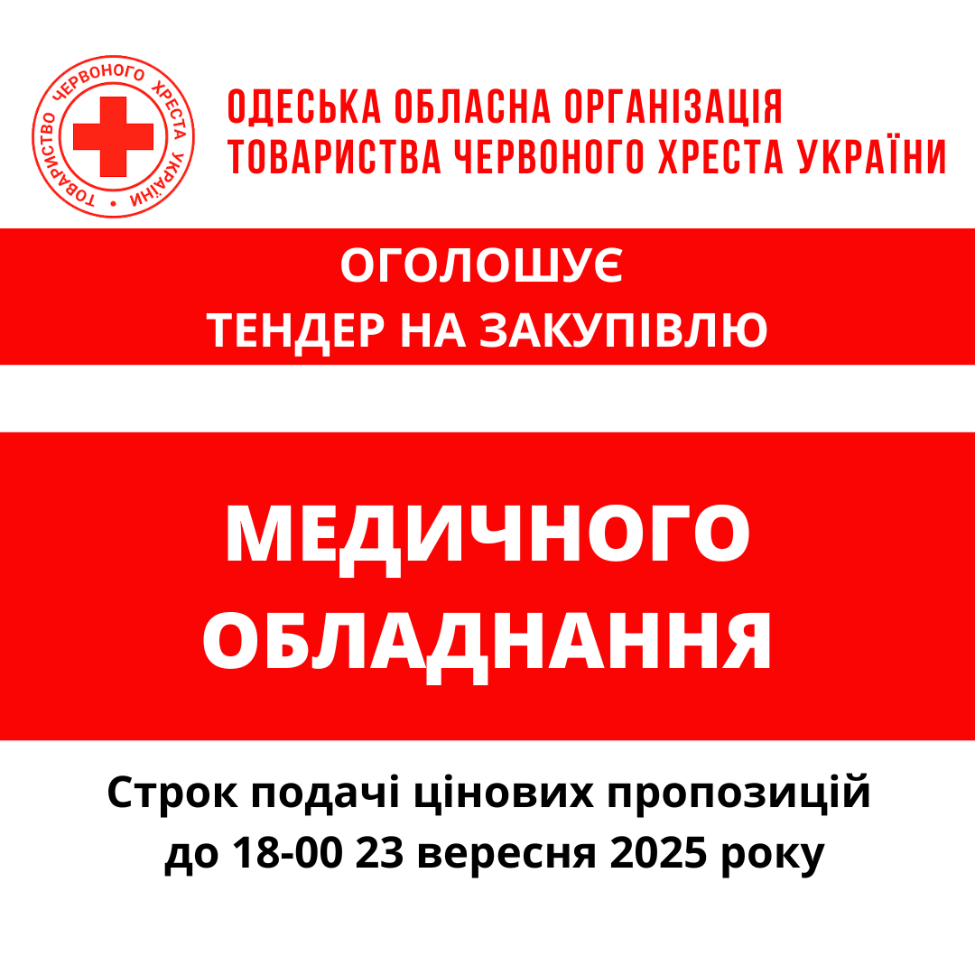 Одеська обласна організація Товариства Червоного Хреста України оголошує конкурс на місцеву закупівлю на придбання засобів підтримки та реабілітації для бенефіціарів.