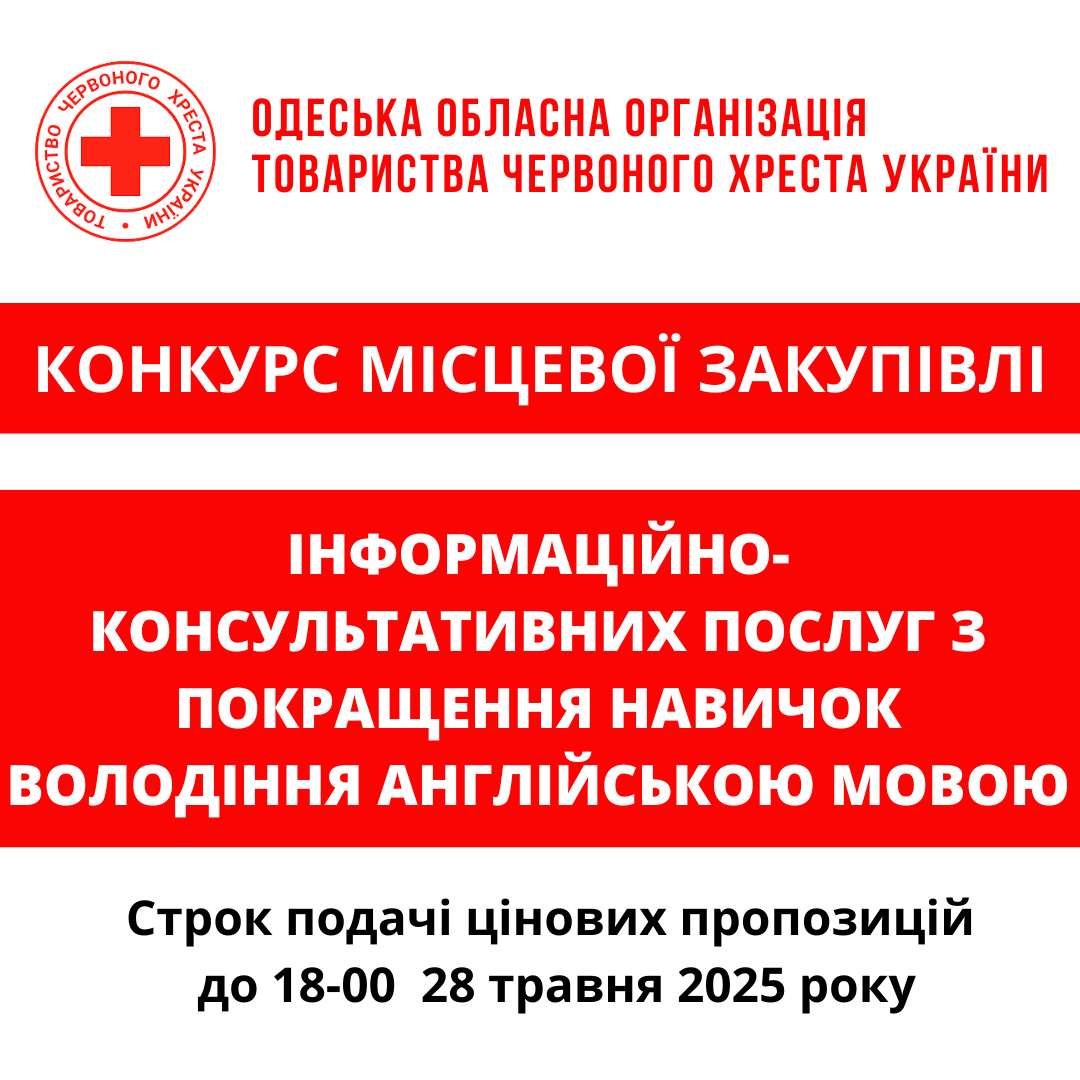 ГО «Одеська обласна організація Товариства Червоного Хреста України» оголошує конкурс місцевої закупівлі послуг з організації та реалізації професійних навчальних курсів з напрямку "СММ" та “Дата аналітик” .