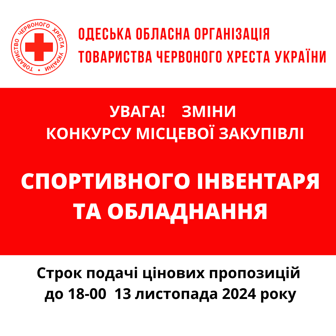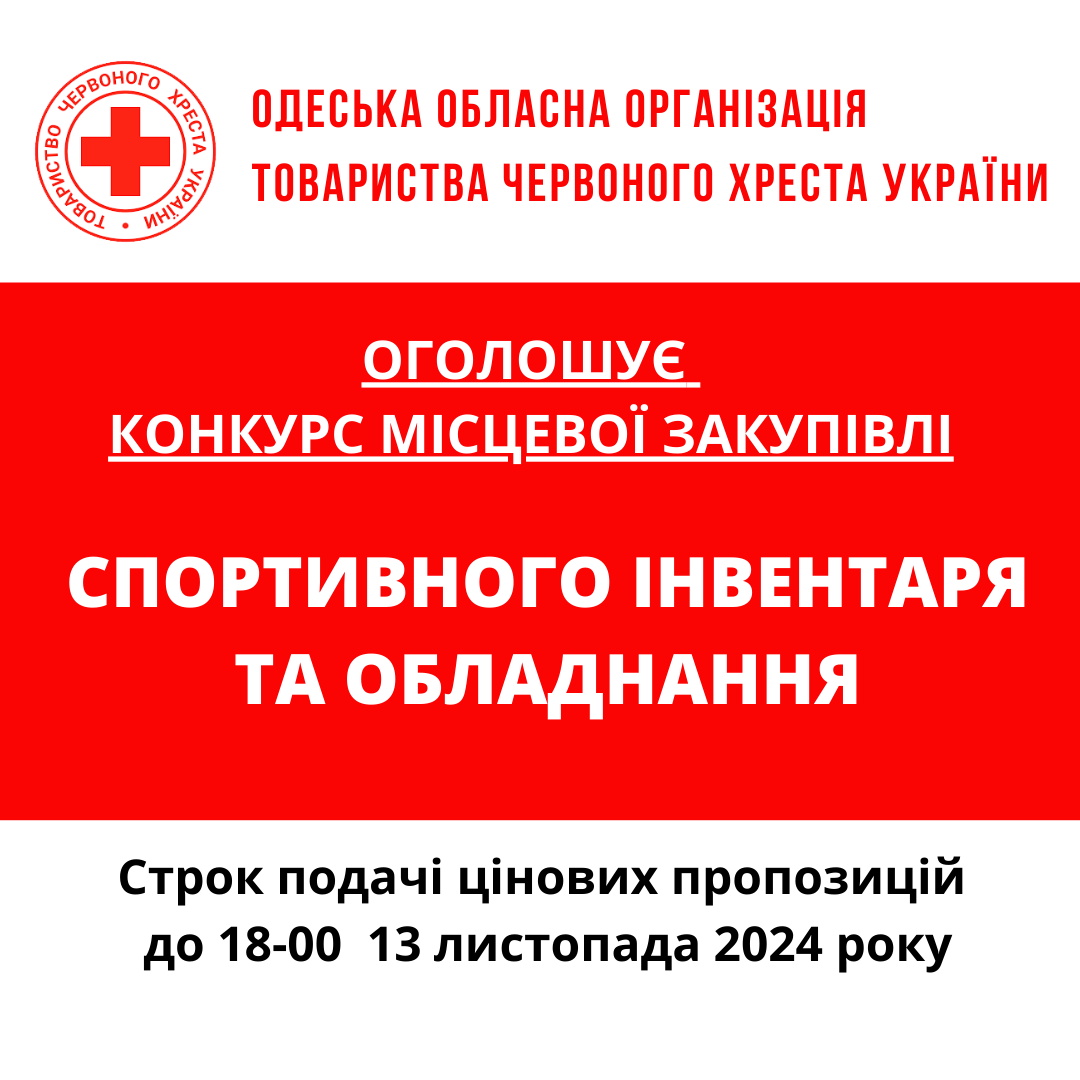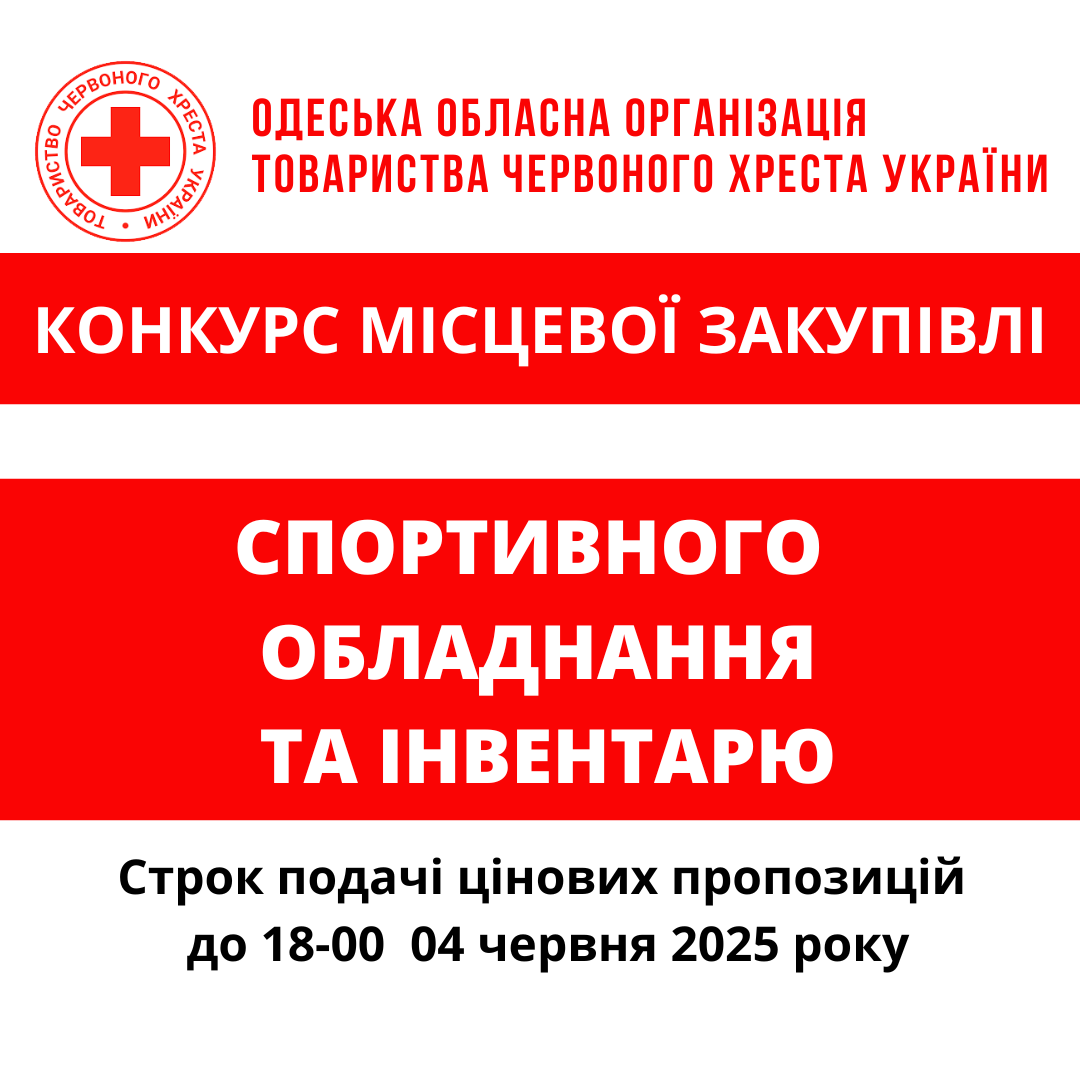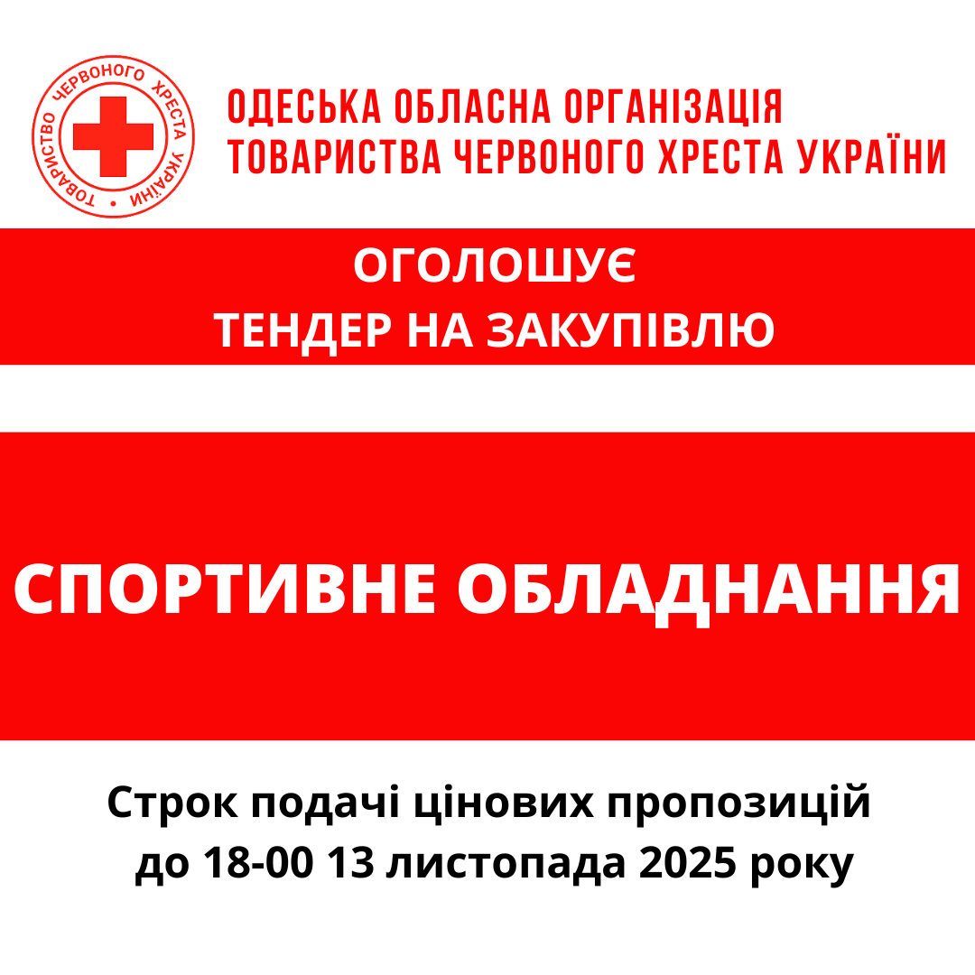 ГО «Одеська обласна організація Товариства Червоного Хреста України» оголошує тендер на закупівлю спортивного обладнання.