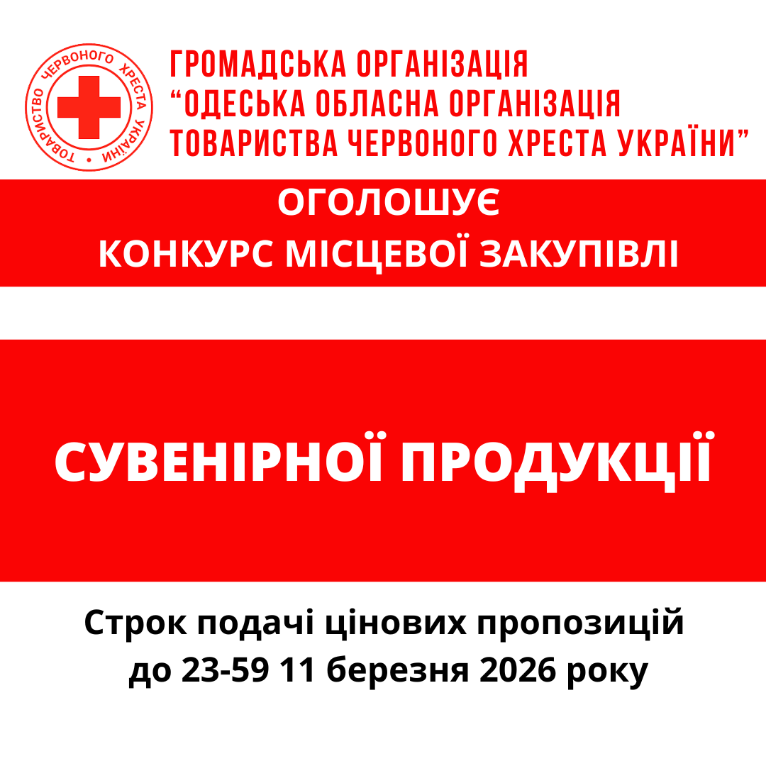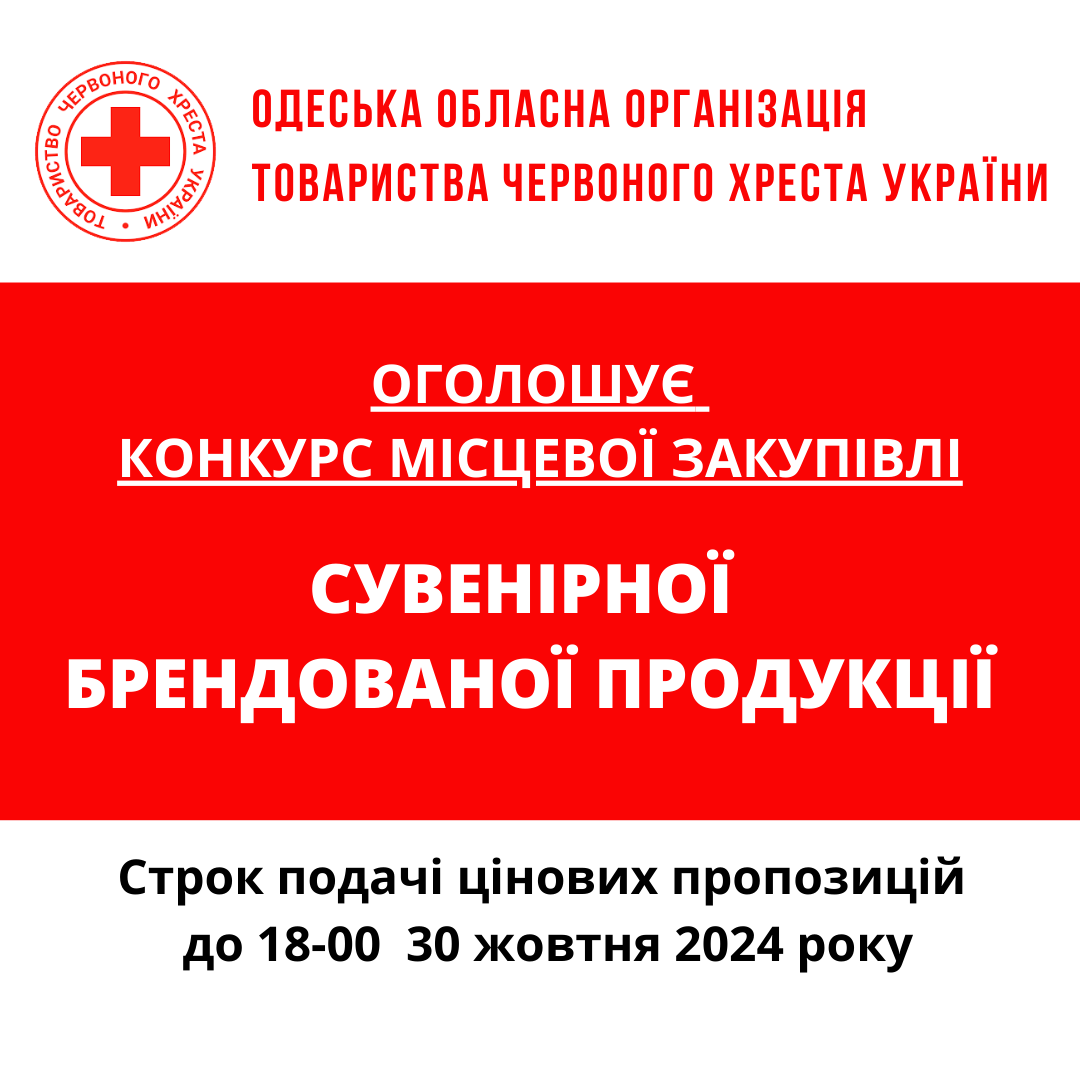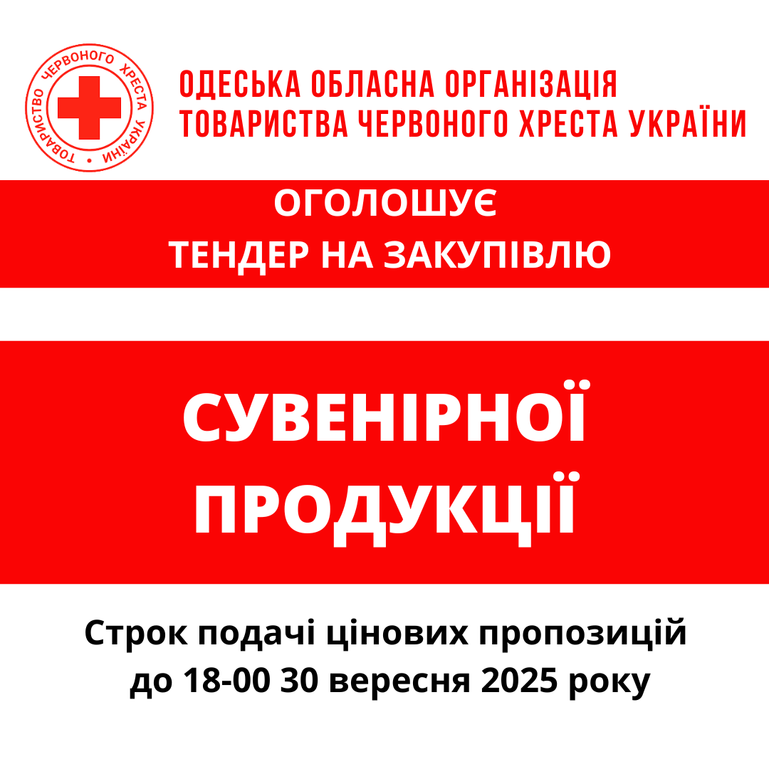ГО «Одеська обласна організація Товариства Червоного Хреста України» оголошує конкурс місцевої закупівлі сувенірної продукції.