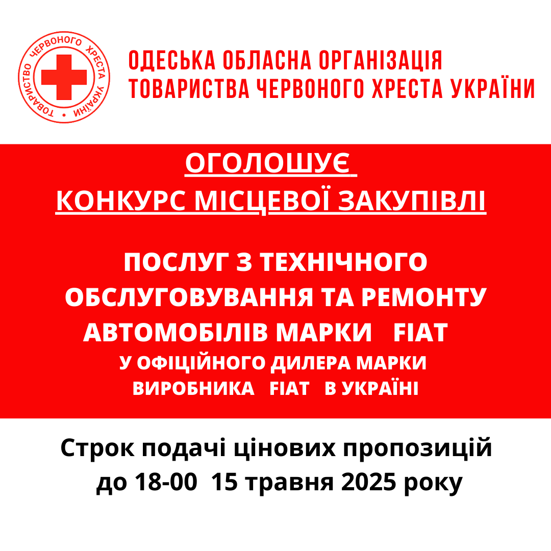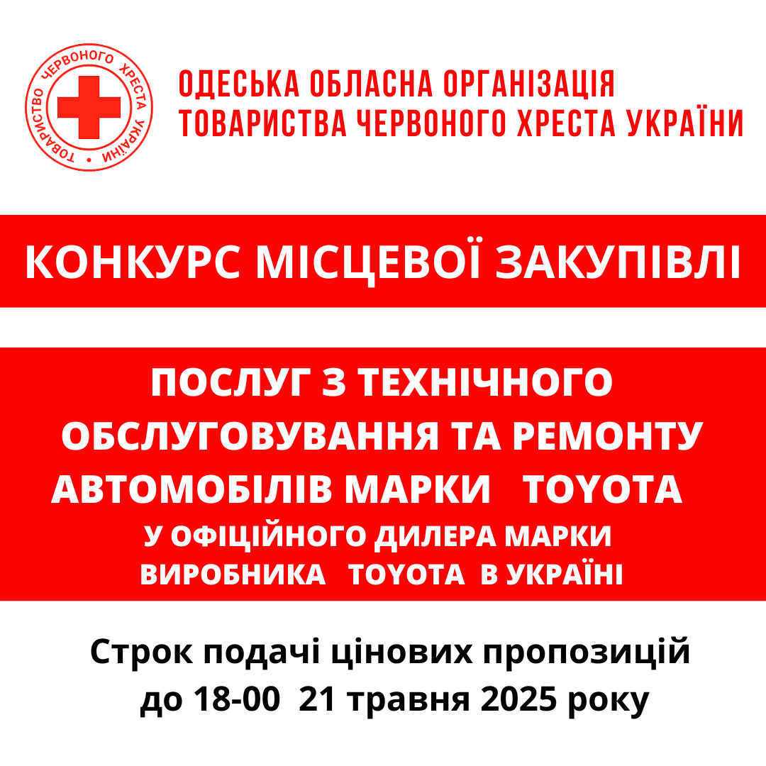 Одеська обласна організація Товариства Червоного Хреста України оголошує конкурс на місцеву закупівлю на придбання транспортних засобів