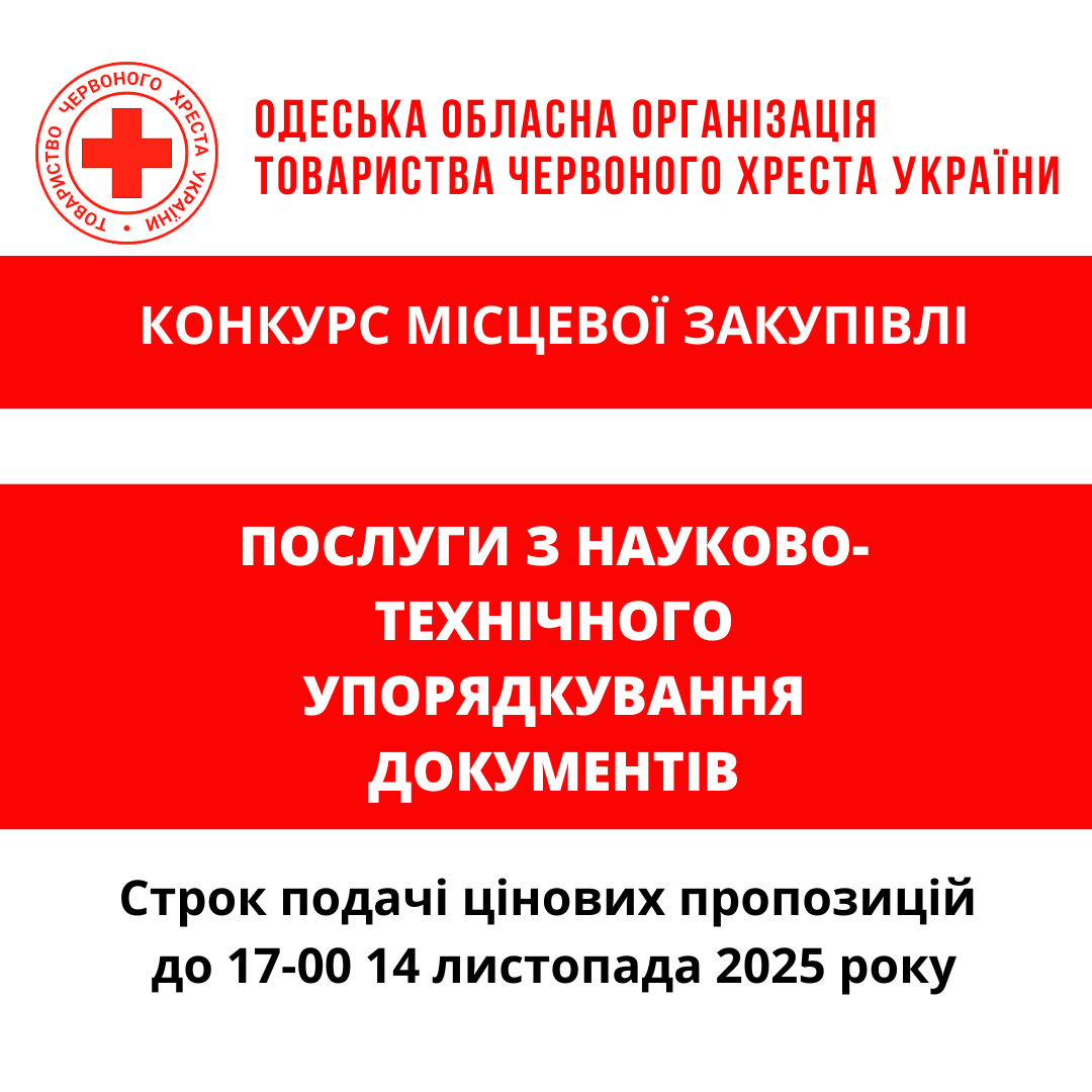 ГО «Одеська обласна організація Товариства Червоного Хреста України» оголошує конкурс місцевої закупівлі послуг з науково-технічного упорядкування документів.