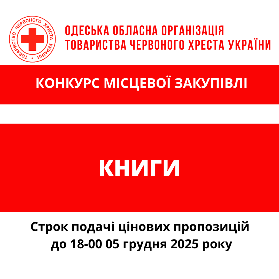 ГО «Одеська обласна організація Товариства Червоного Хреста України» оголошує конкурс місцевої закупівлі книг.
