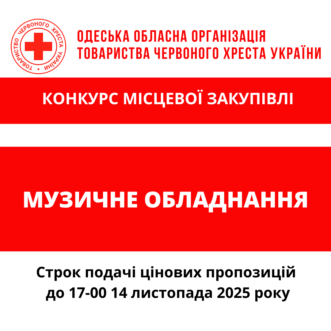 ГО «Одеська обласна організація Товариства Червоного Хреста України» оголошує конкурс місцевої закупівлі музичного обладнання.