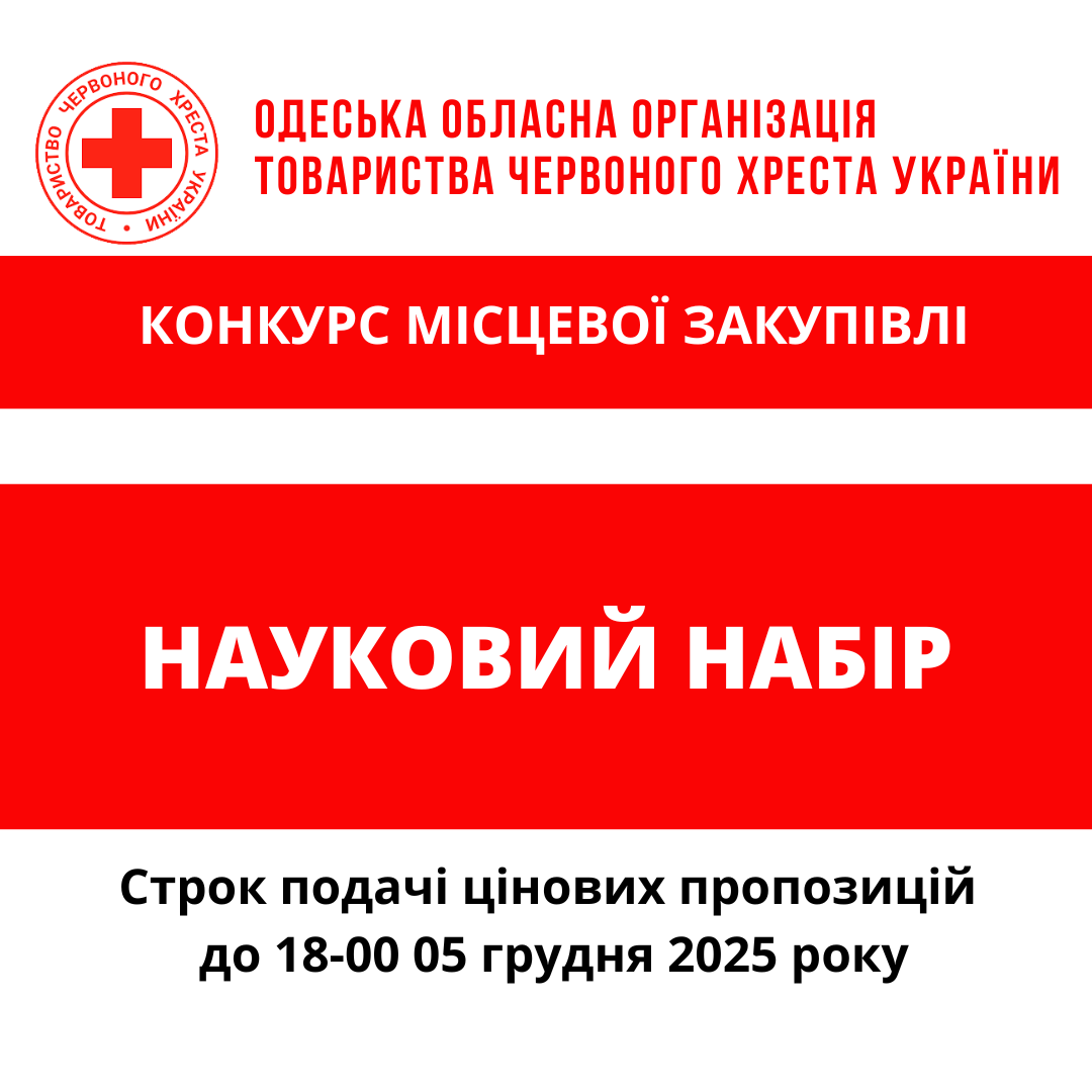 ГО «Одеська обласна організація Товариства Червоного Хреста України» оголошує конкурс місцевої закупівлі наукового набору.