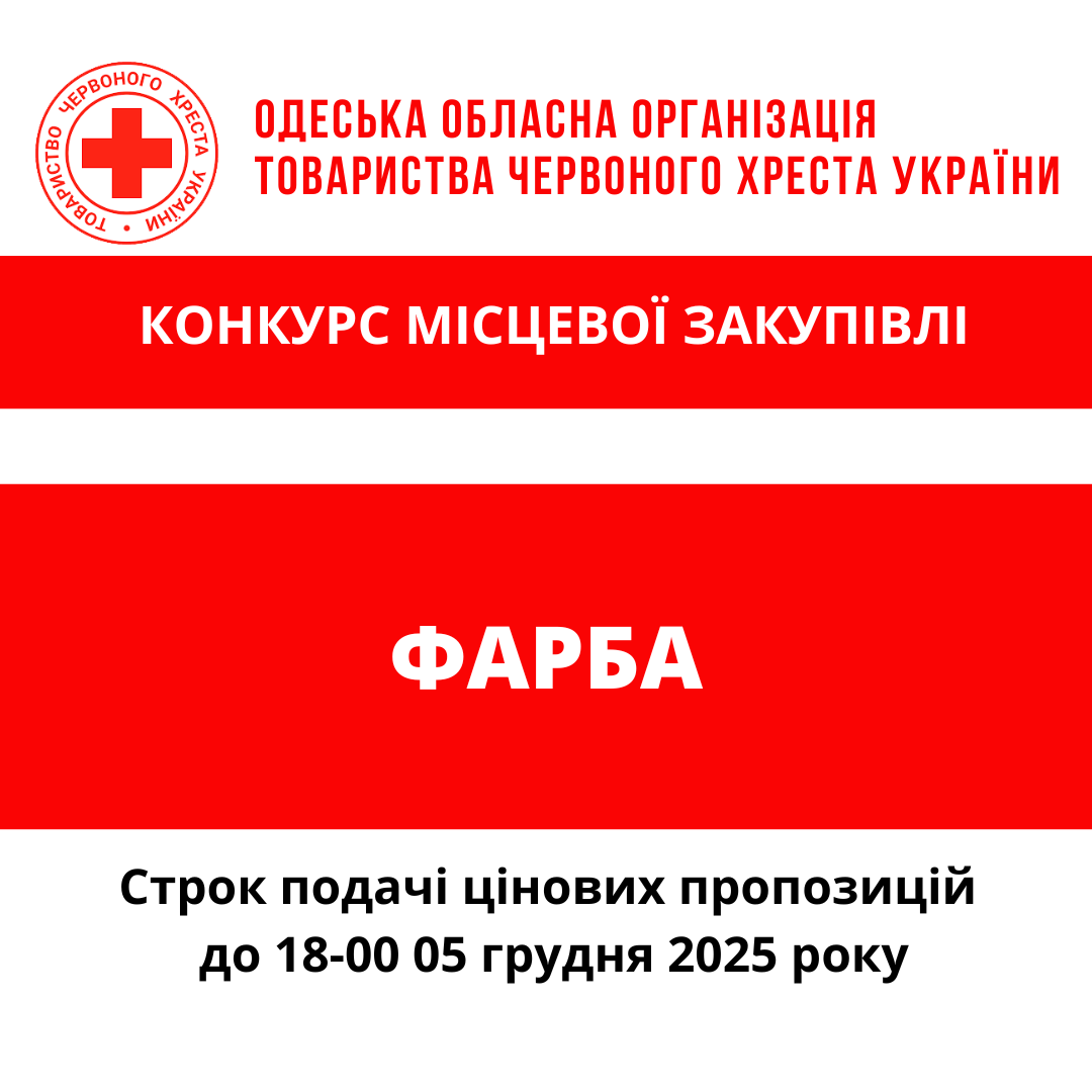 ГО «Одеська обласна організація Товариства Червоного Хреста України» оголошує конкурс місцевої закупівлі фарби.
