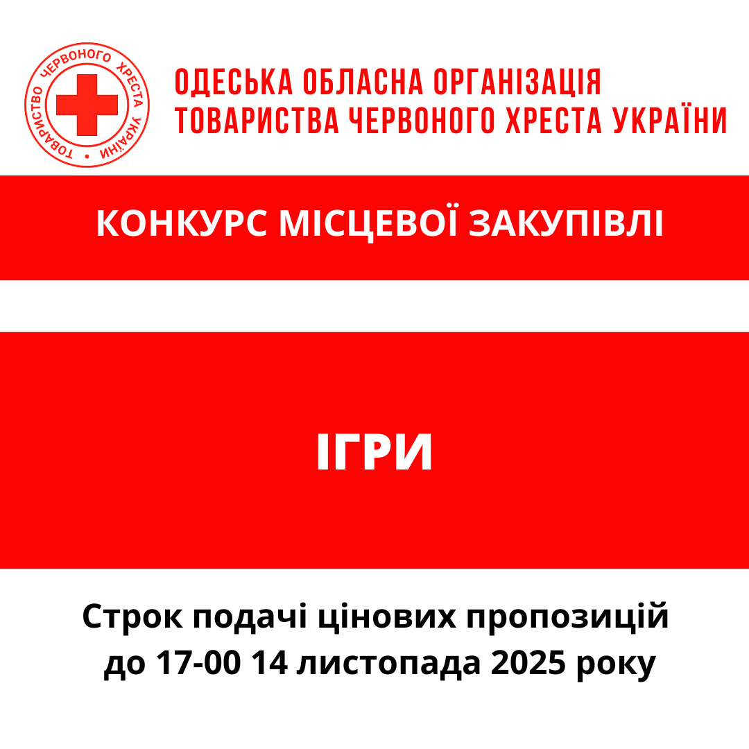 ГО «Одеська обласна організація Товариства Червоного Хреста України» оголошує конкурс місцевої закупівлі ігор.