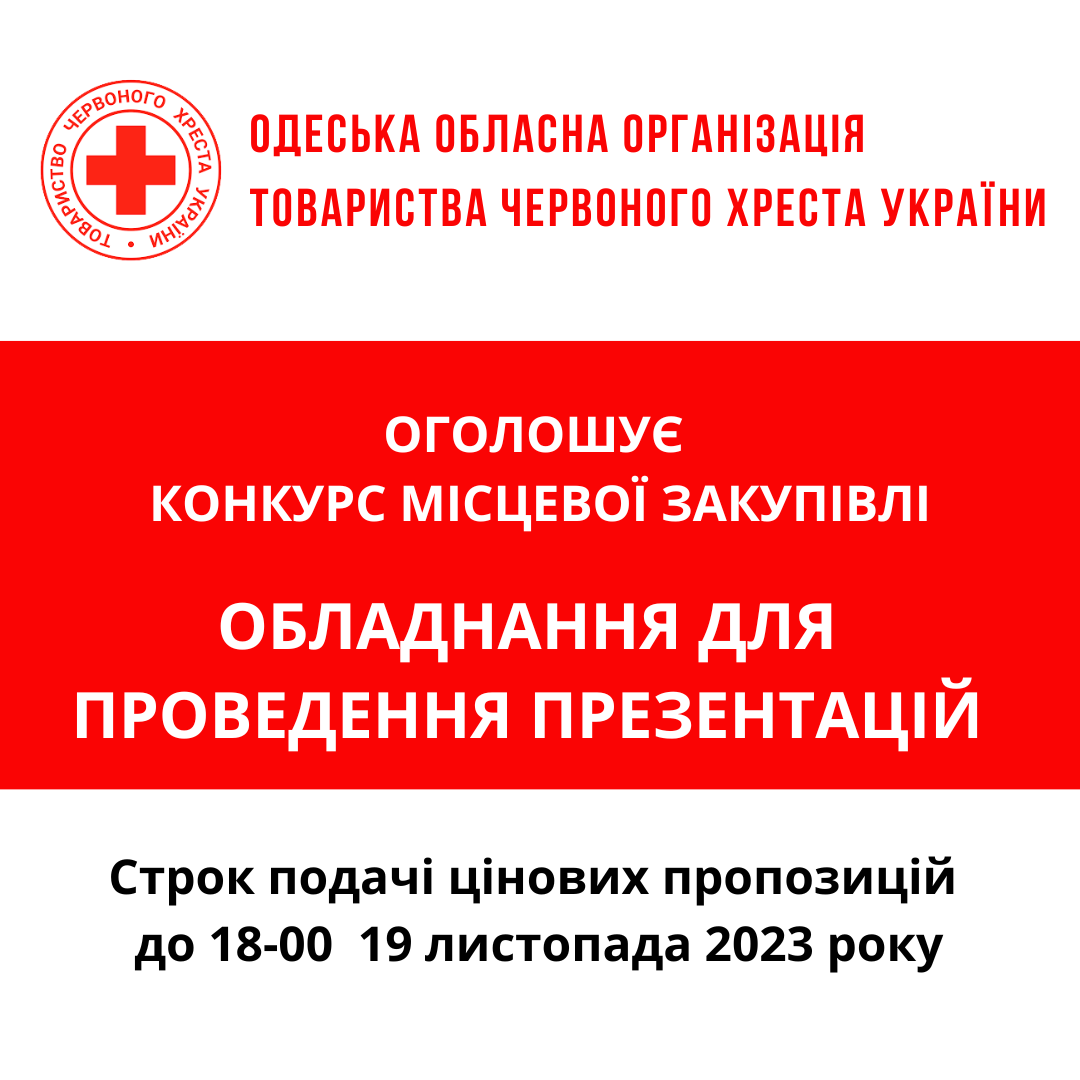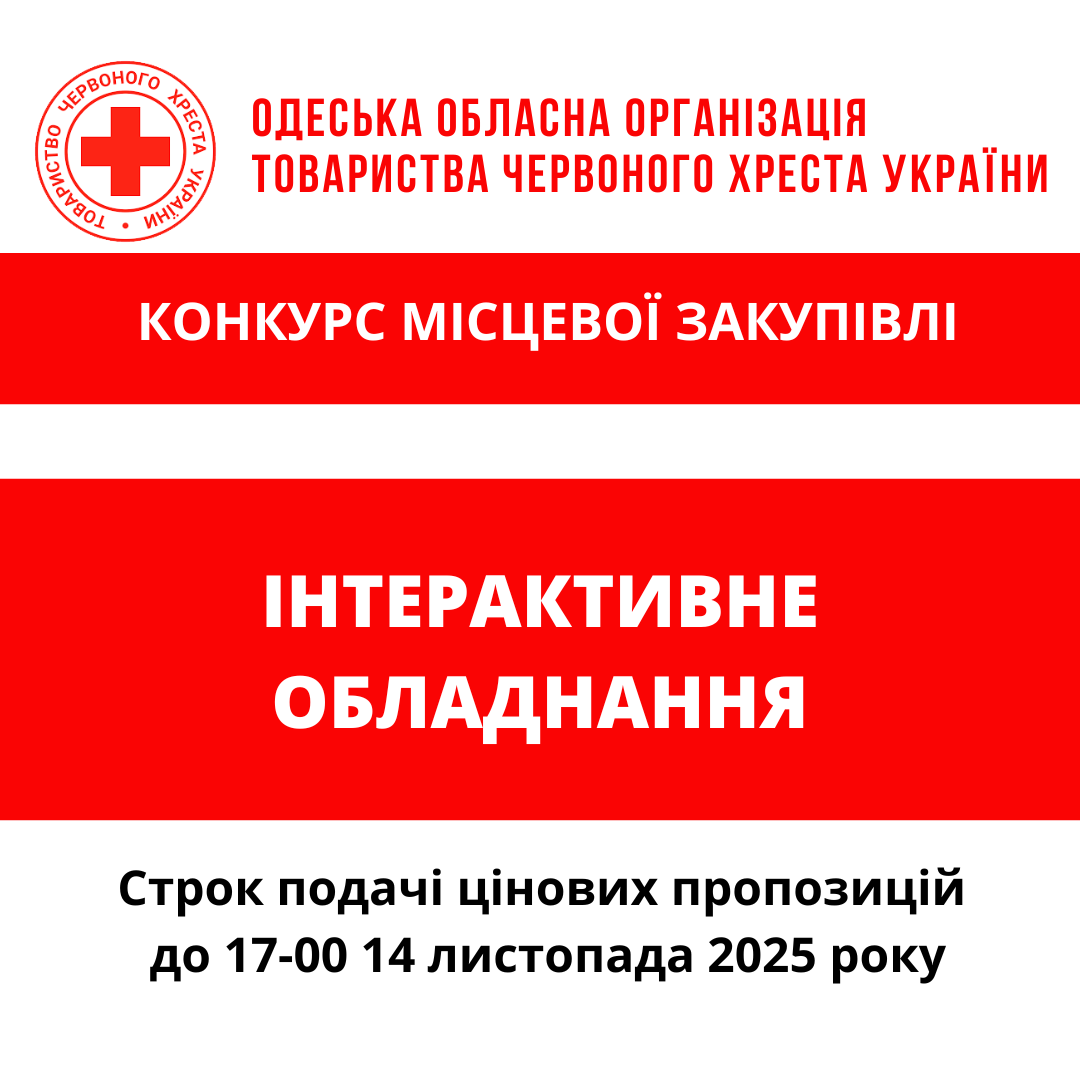 ГО «Одеська обласна організація Товариства Червоного Хреста України» оголошує конкурс місцевої закупівлі інтерактивного обладнання для проведення інформаційно-просвітницької діяльності.