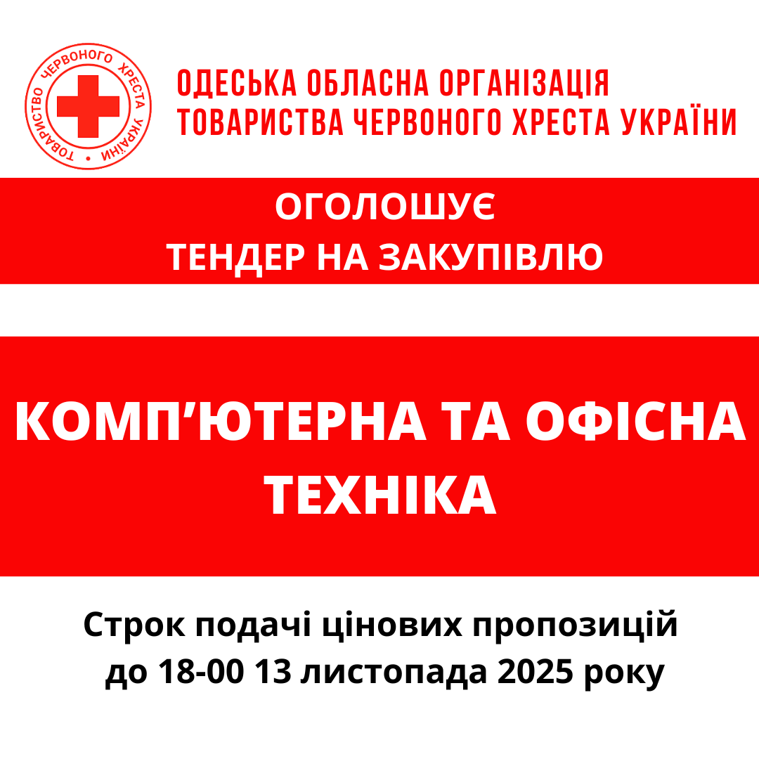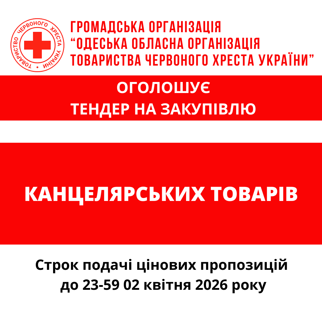 ГО «Одеська обласна організація Товариства Червоного Хреста України» оголошує тендер на закупівлю канцелярських товарів.