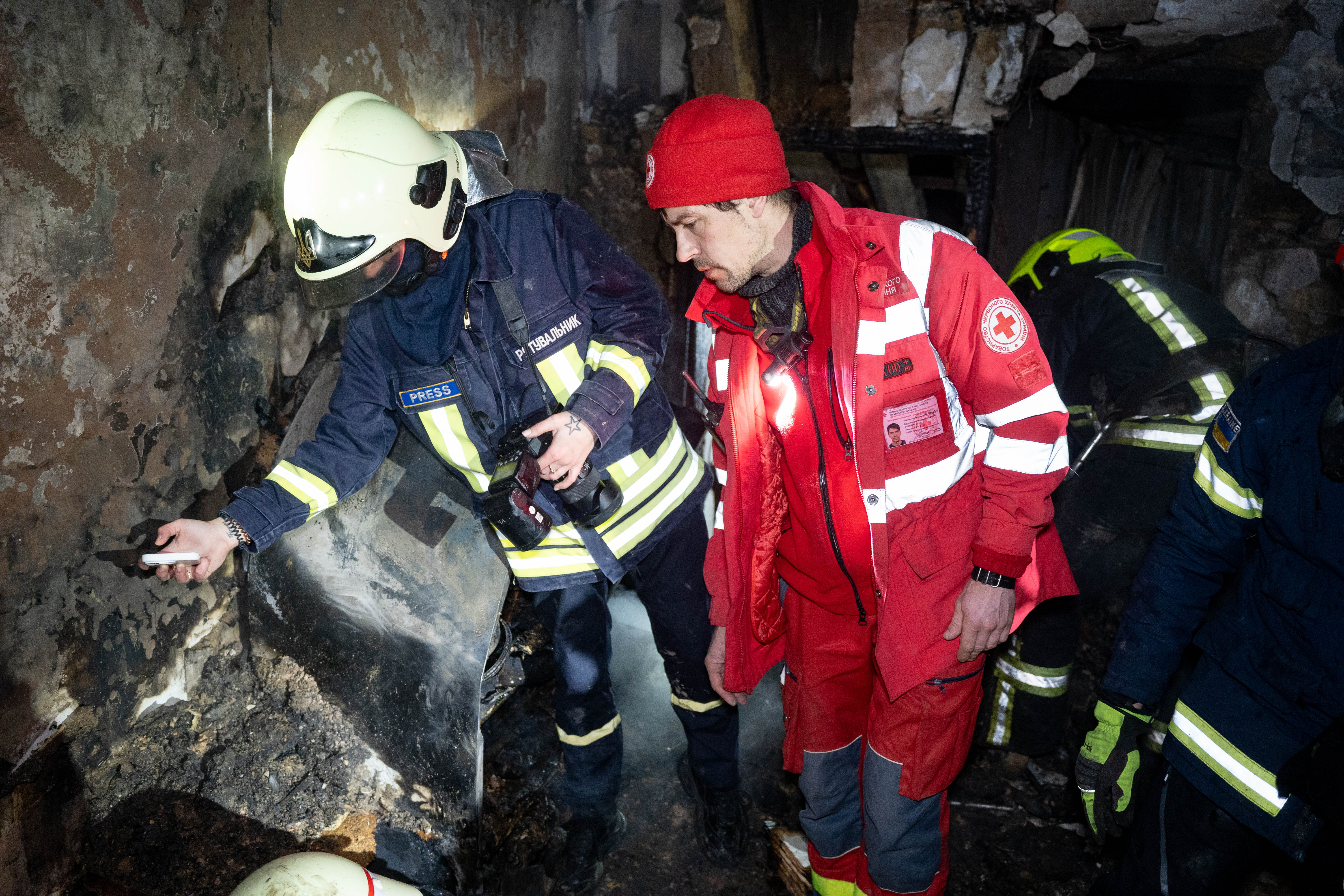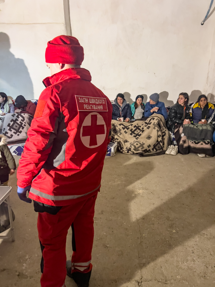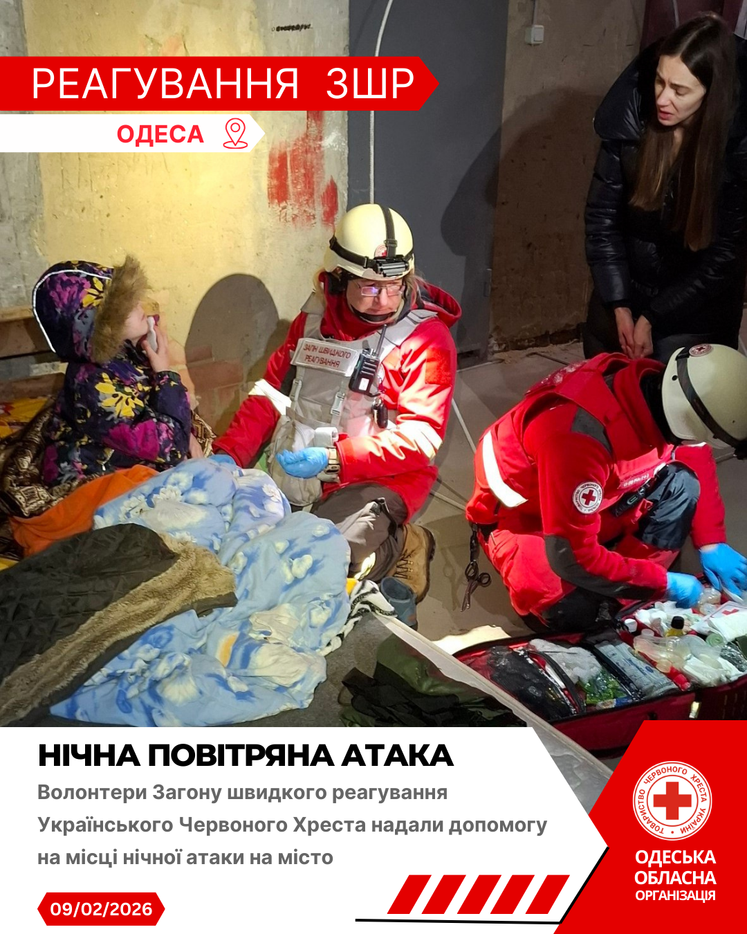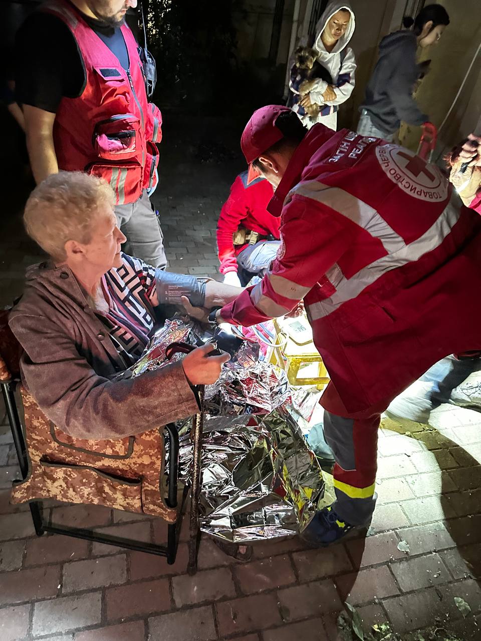 Волонтери Українського Червоного Хреста допомагають на місці нічної атаки