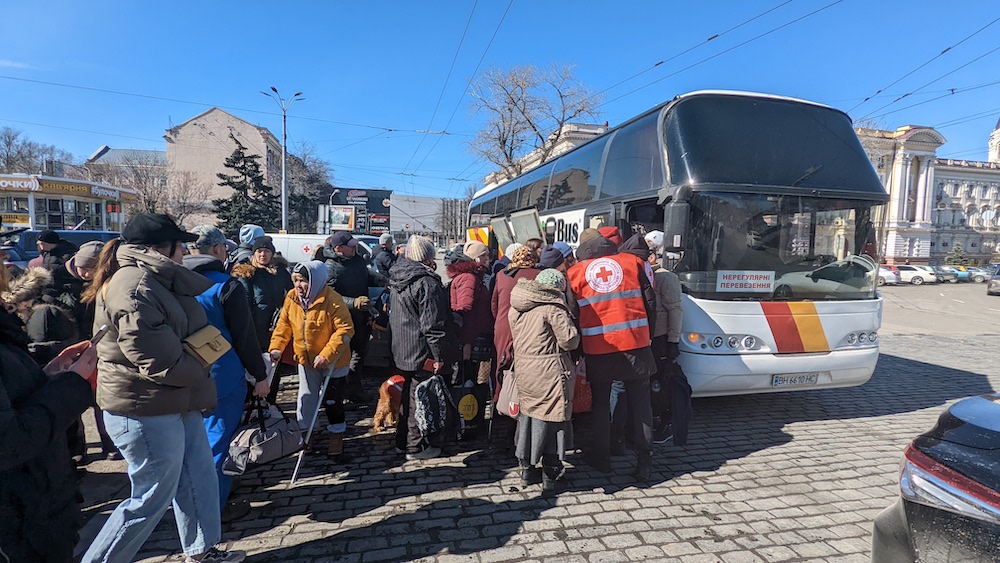 Щоденно Одеська обласна організація Товариства Червоного Хреста України перевозить сотні цивільних до кордону з Молдовою кількома рейсами. До одеситів масово додаються й вимушені переселенці з Херсонщини й Миколаївщини.
