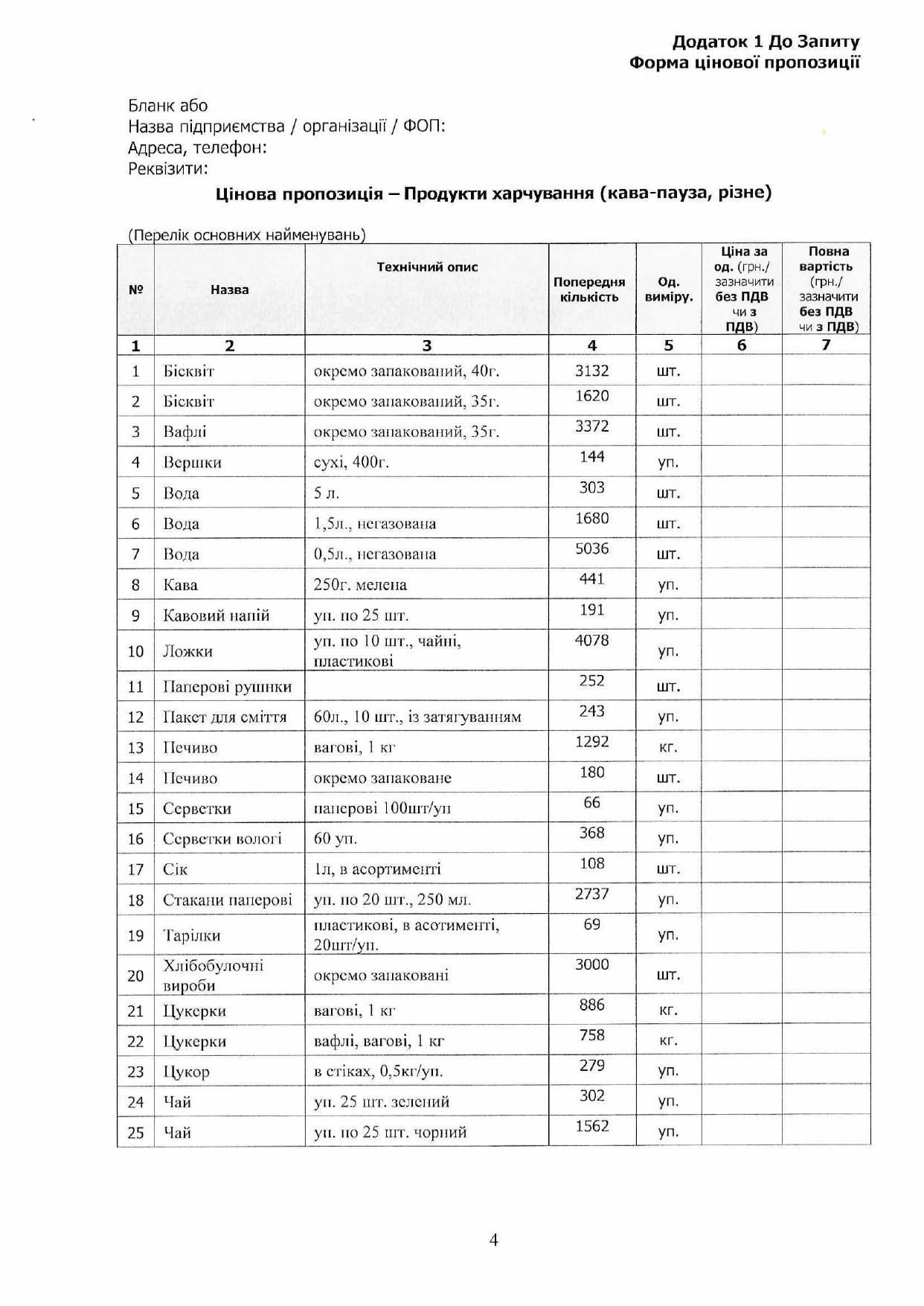 УВАГА! КОНКУРС на місцеву закупівлю продуктів харчування (кава-пауза, різне)