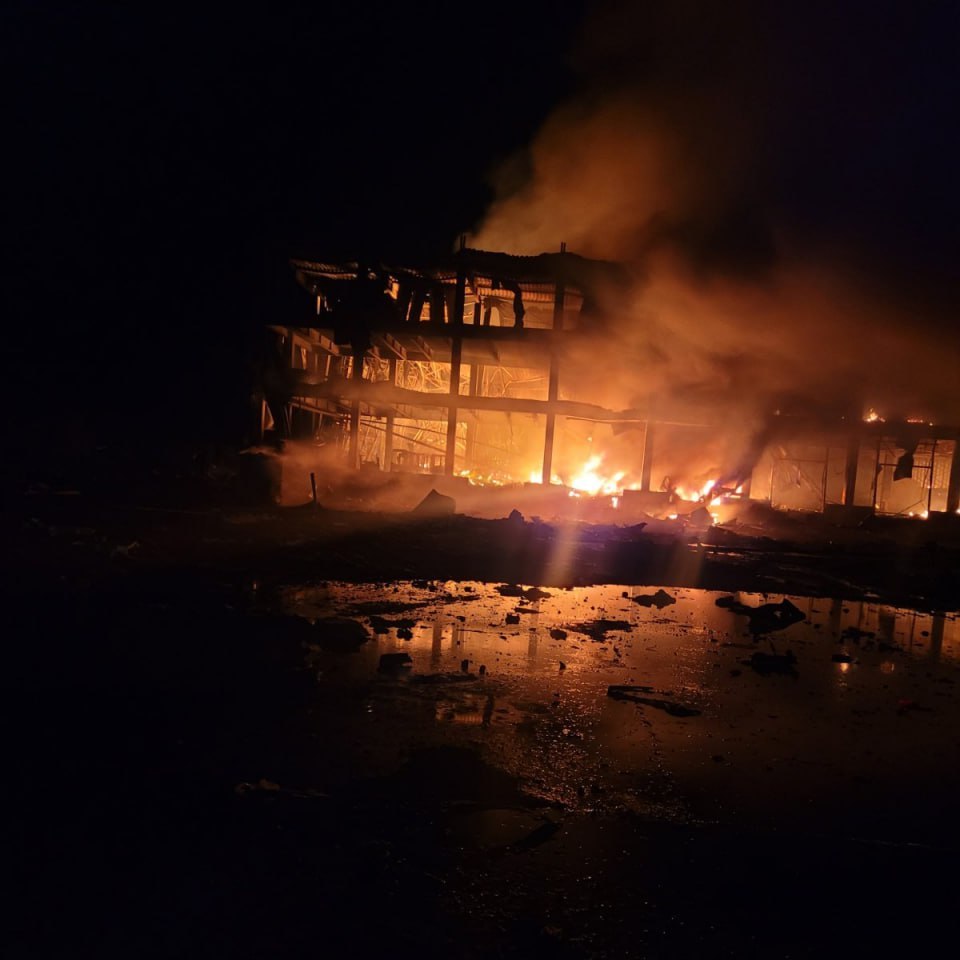 Внаслідок ракетного удару по Одещині 08.05.2023 повністю зруйновано орендоване складське приміщення Одеської обласної організації Товариства Червоного Хреста України площею 1000кв.м.