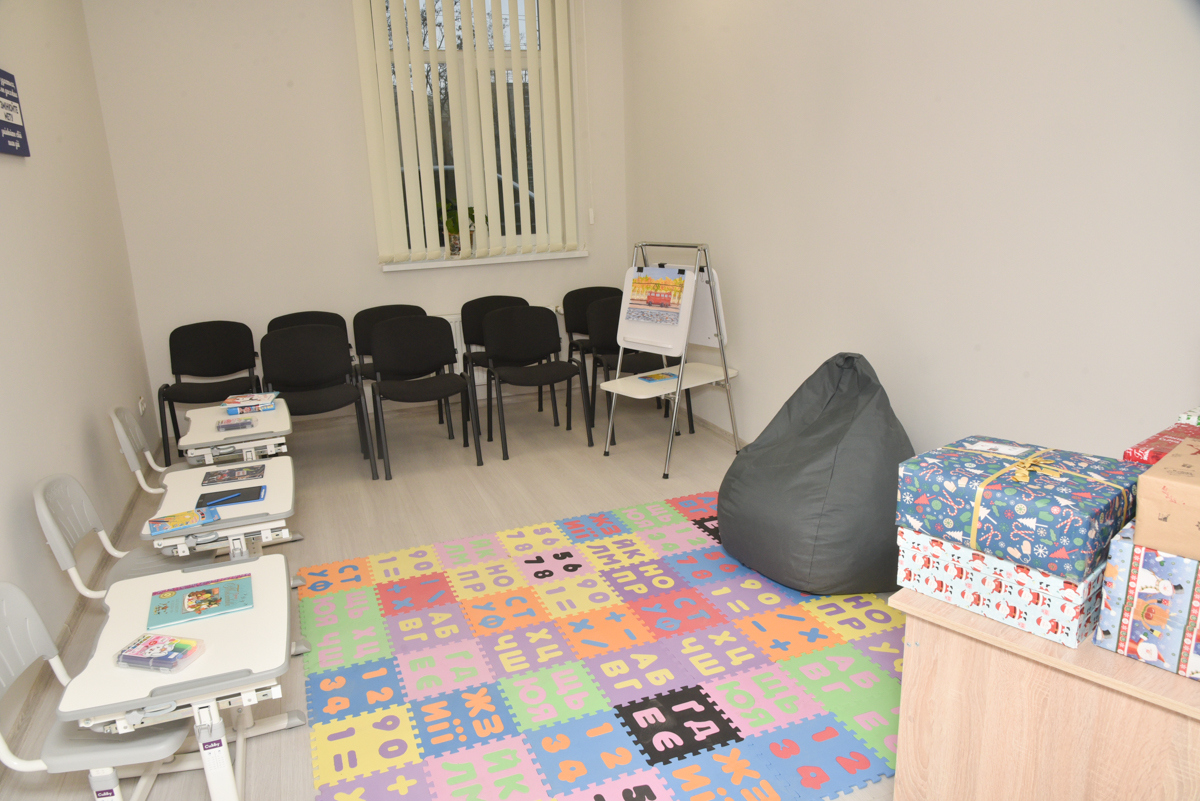 Облаштовано кімната для проведення заходів з психосоціальної підтримки та банк одягу.