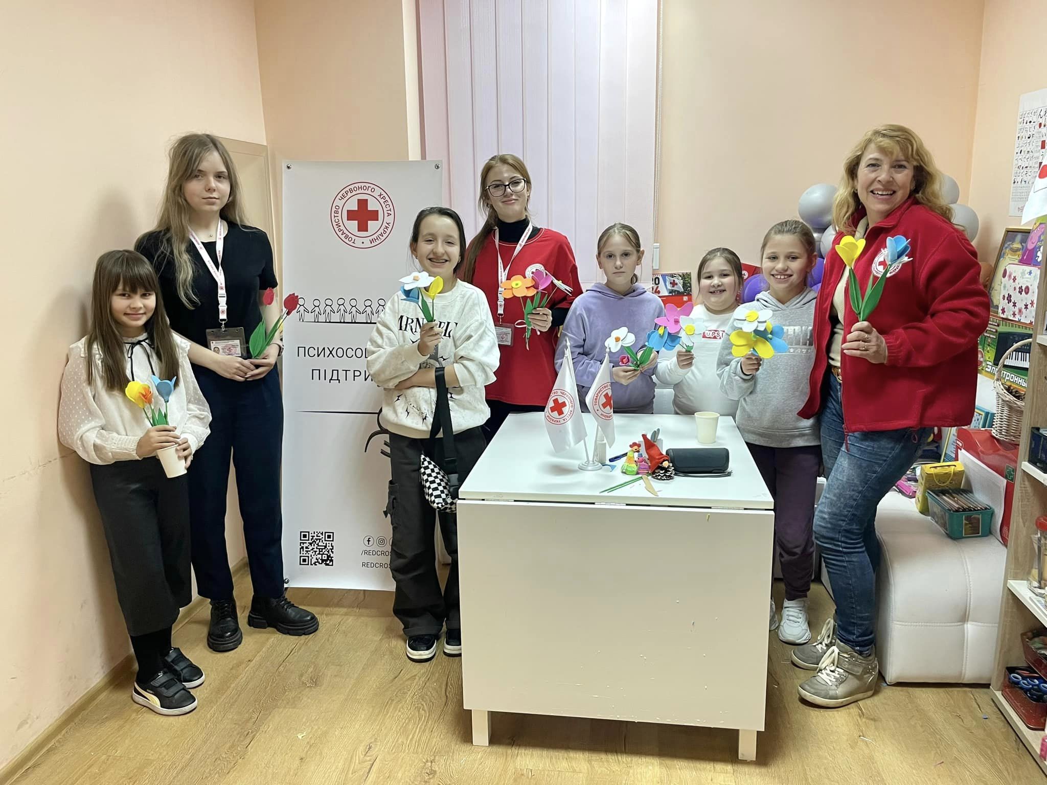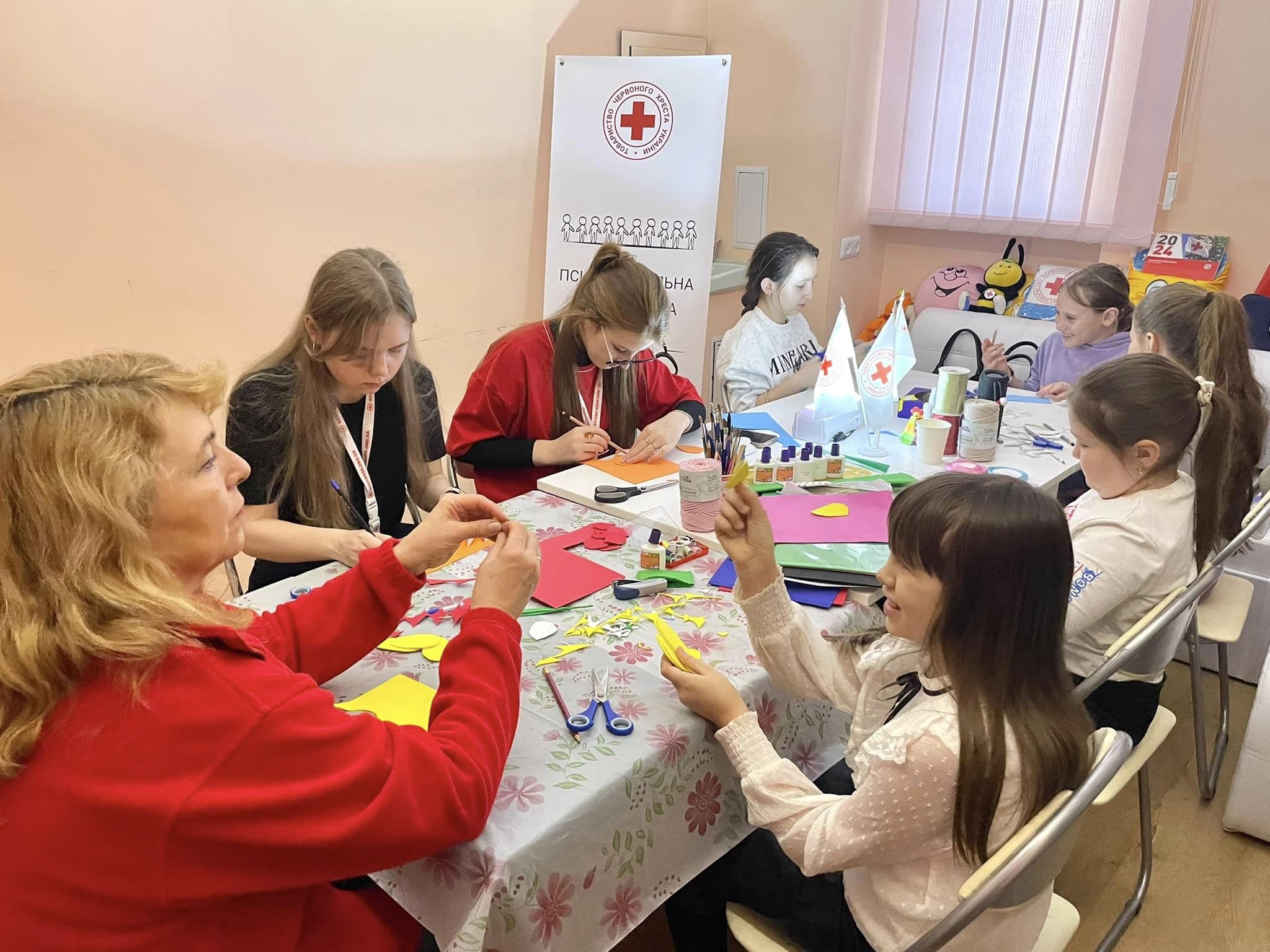 В Київській районній організації міста Одеса Товариства Червоного Хреста України в рамках психосоціальної підтримки для дітей з сімей внутрішньо переміщених осіб, щотижня у вівторок і четвер проводяться заходи з елементами творчості.