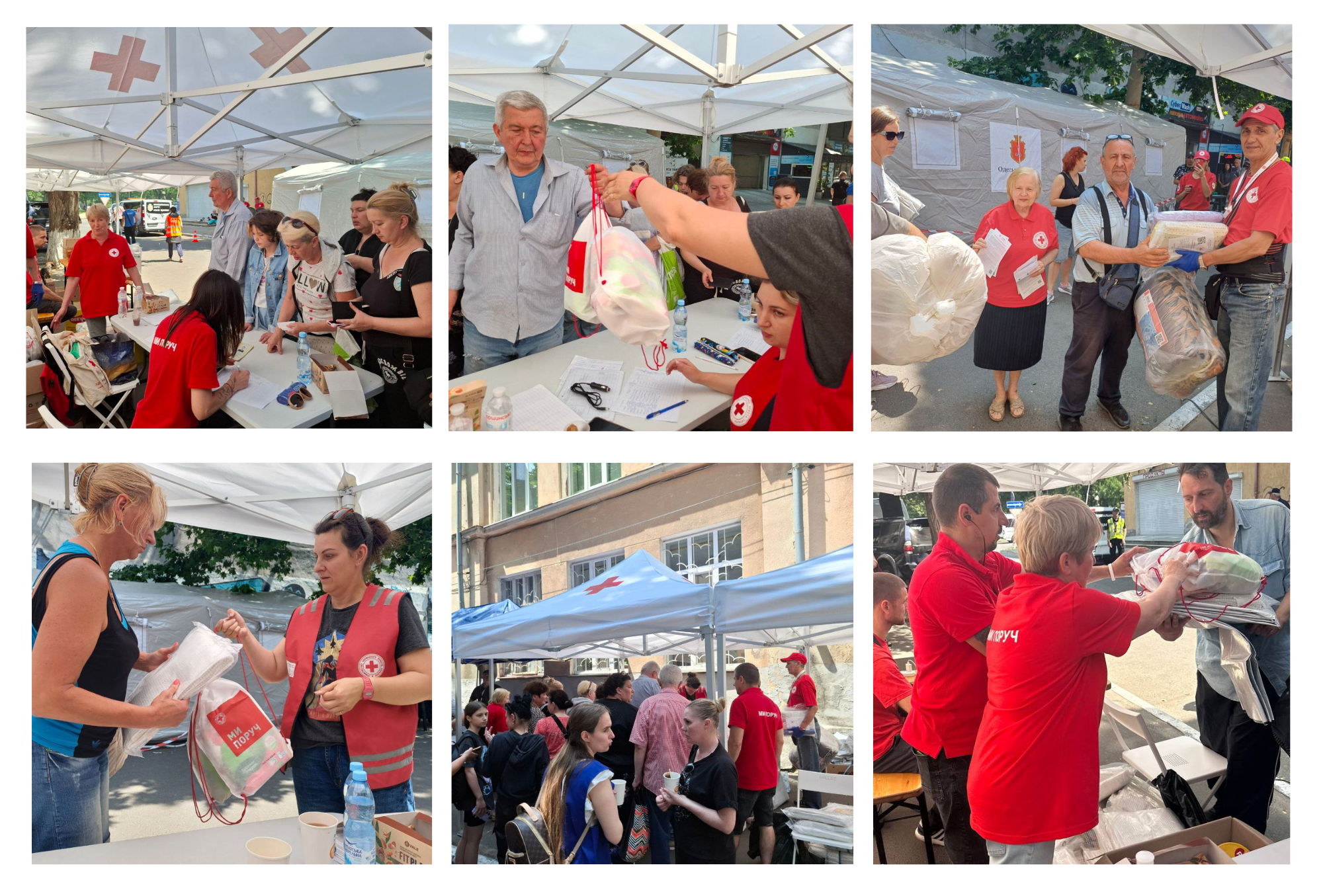 Співробітники та волонтери Одеської обласної організації Українського Червоного Хреста надавали мешканцям з пошкоджених будинків брезент TARPAULIN для закриття вікон, продуктові та гігієнічні набори, комплекти домашнього текстилю - ковдри та подушки, комплекти постільної білизни.