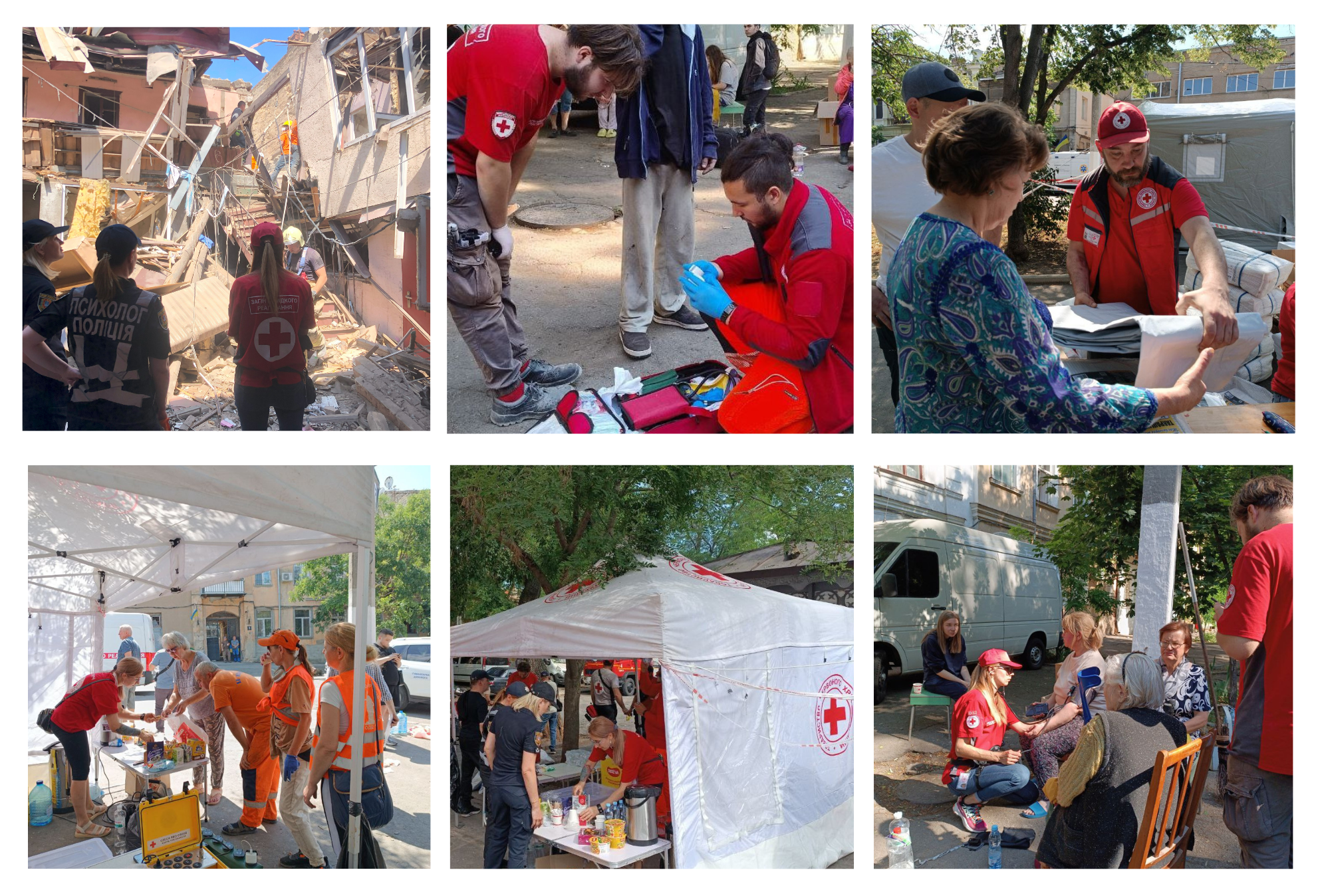 Команда Загону швидкого реагування Українського Червоного Хреста в Одеській області спільно з іншими спеціальними службами міста надавала необхідну допомогу на місцях ліквідації наслідків масованої повітряної атаки в Приморському районі м. Одеса.