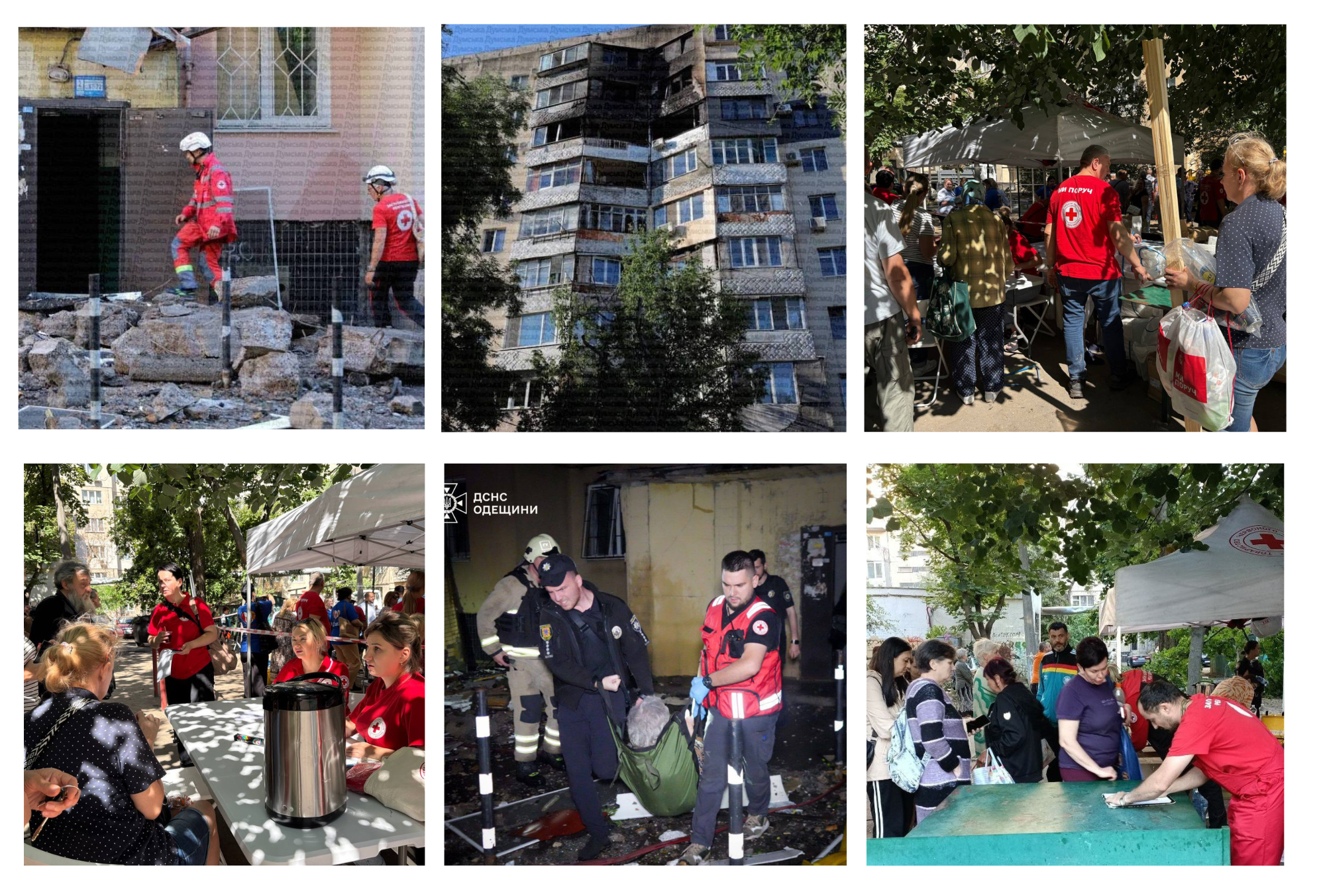 На місці ліквідації наслідків влучень працює команда Українського Червоного Хреста міста Одеса.